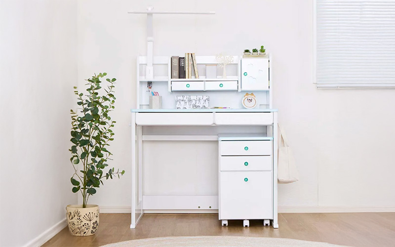 シンプルなものから可愛いデザインまで、形とカラーが豊富なESシリーズ。天板が天然木のスマート2、鏡面天板のステラ2、組み替え型のフレクス2とストレージ2と豊富なデザインからお選びいただけます。