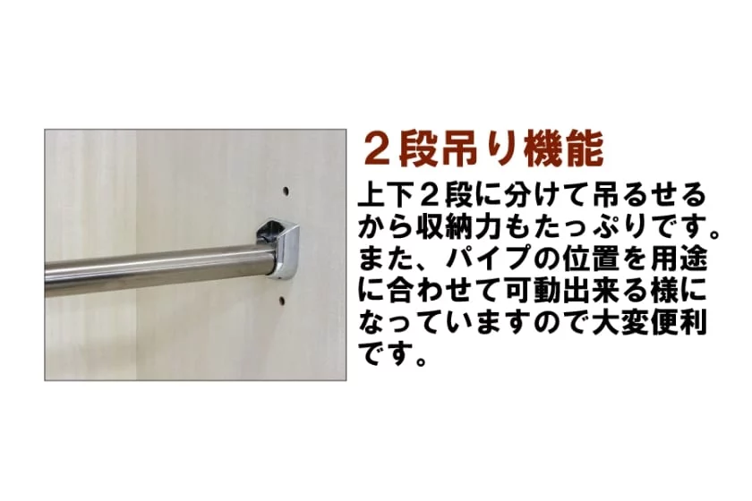 左側には固定パイプ、右側には可動式のパイプが上下2段付いていて収納力たっぷりです。