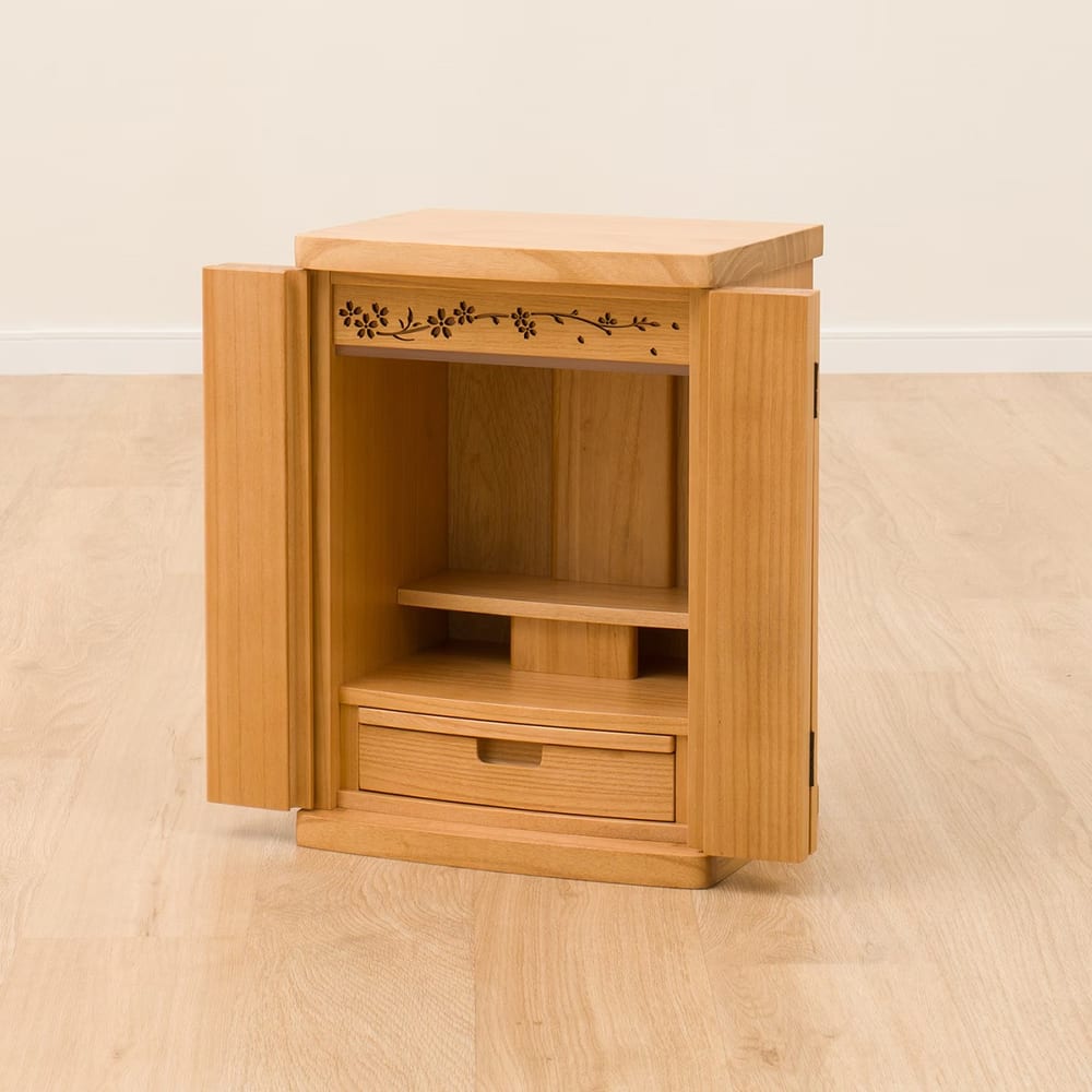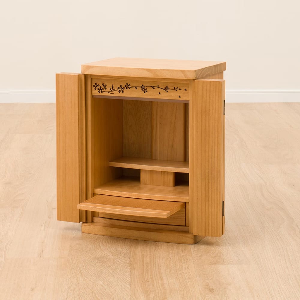 ◆主張しすぎないデザインなので家族の集まるリビングに置いても違和感の無いデザイン。◆和室にも洋室にも合わせやすく、お好きな場所に置いていただけるインテリアのようなお仏壇です。