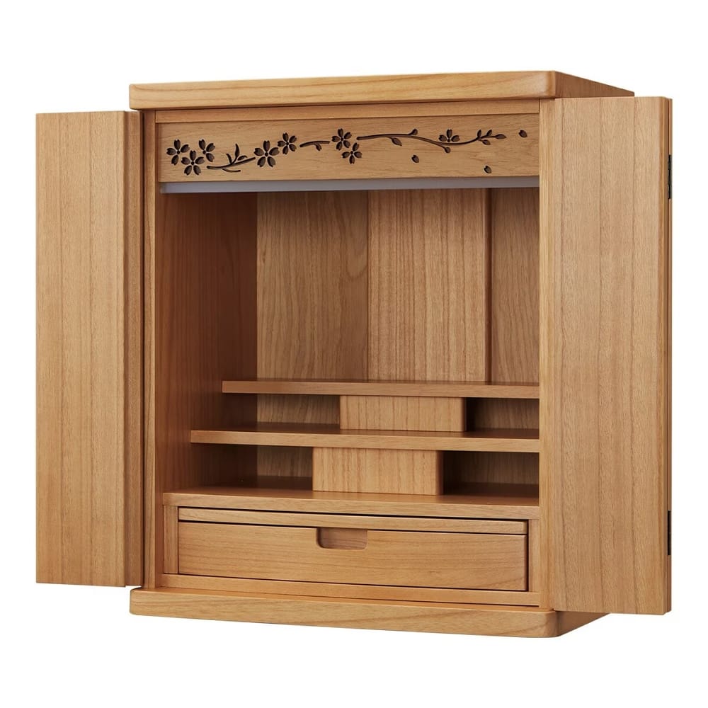 ◆主張しすぎないデザインなので家族の集まるリビングに置いても違和感の無いデザイン。◆和室にも洋室にも合わせやすく、お好きな場所に置いていただけるインテリアのようなお仏壇です。