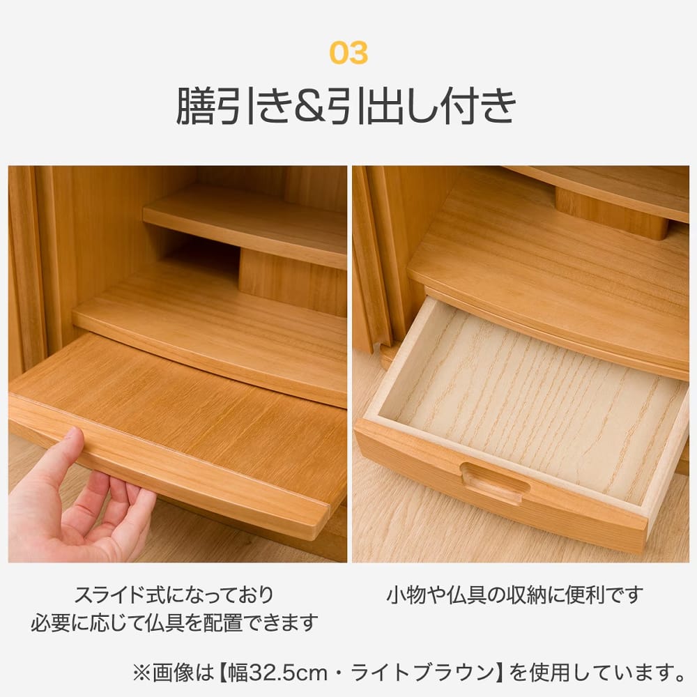 ◆膳引きはスライド式になっており、必要に応じて仏具を配置できます。