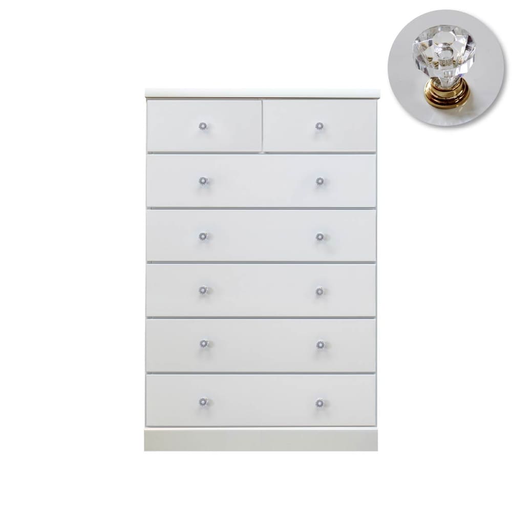 ハイチェスト アリス 80−6 WH/取:クリスタル(シルバー取手付)
