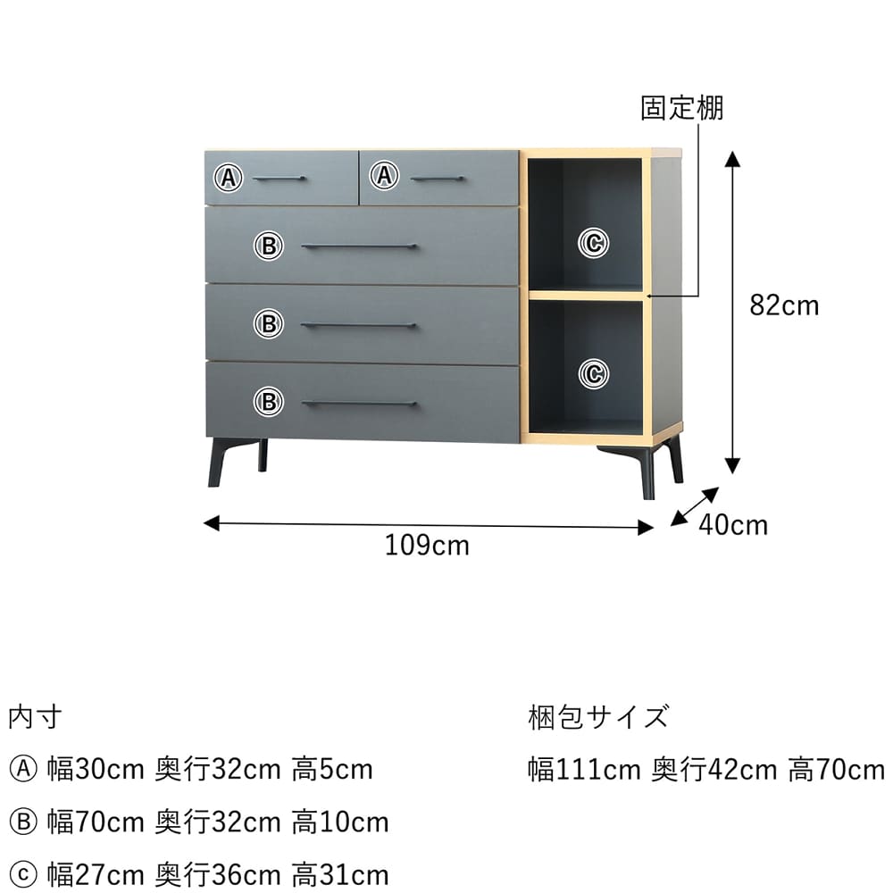 ローチェスト ロンド110−4 グレー×ナチュラル