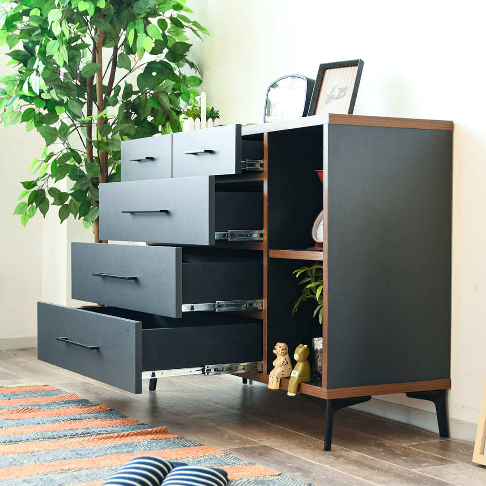 ◆引き出し内部もマットブラック仕上げで大変シックな仕上りです。