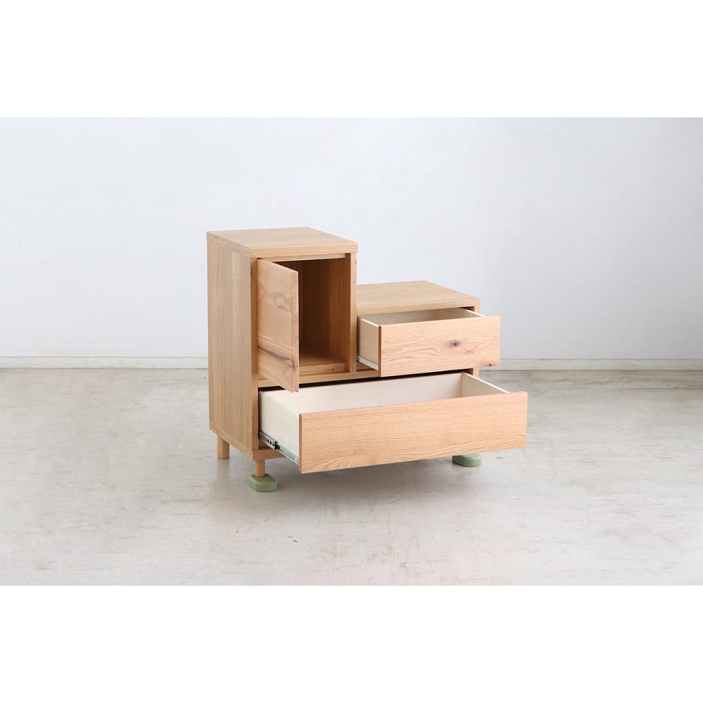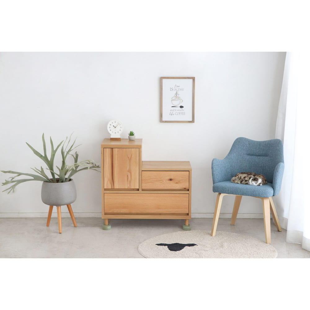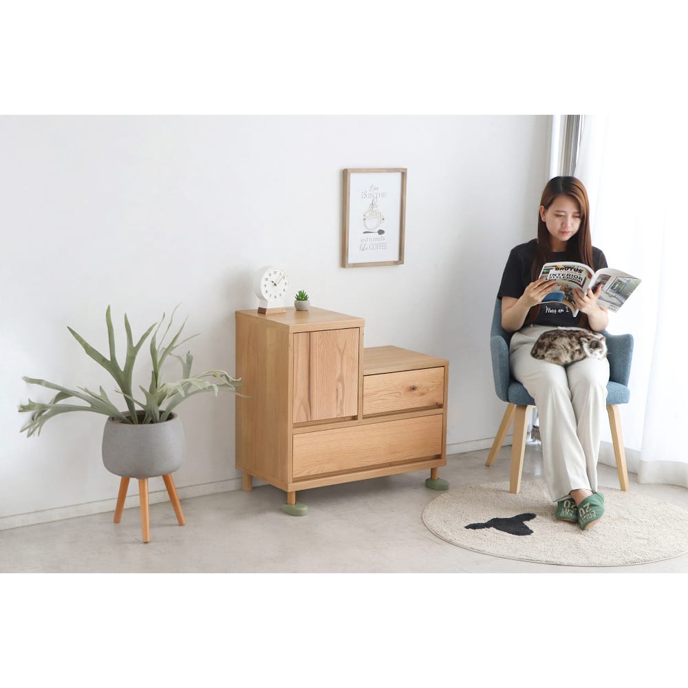 ◆天然木の温かみを感じる、ナチュラルデザインの収納アイテム。◆高い場所への登り降りが苦手な子や、猫ちゃんが素早く登れるように考えた階段状のデザインです。