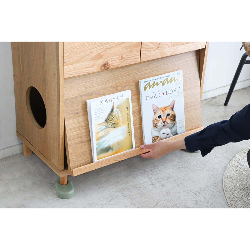 ◆段差に本などが立てかけられるので、猫がいないご家庭でも使えます。