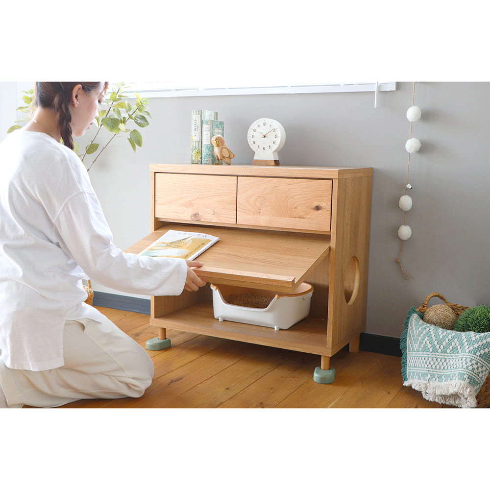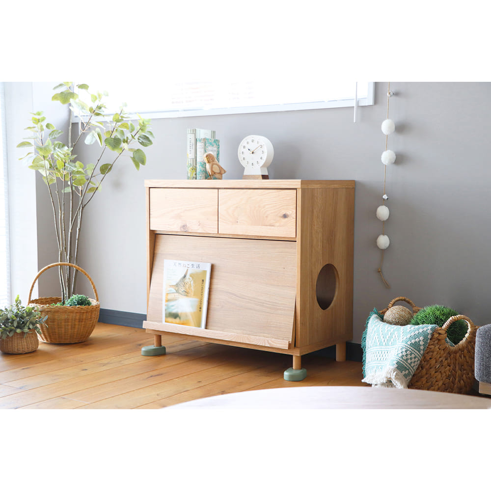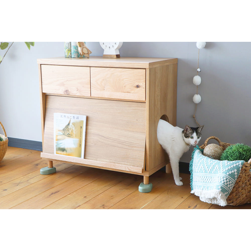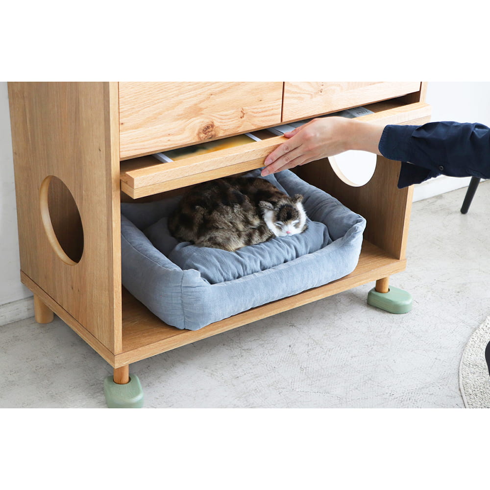 ◆天然木の温かみを感じる、ナチュラルデザインの収納アイテム。◆高い場所への登り降りが苦手な子や、猫ちゃんが素早く登れるように考えた階段状のデザインです。