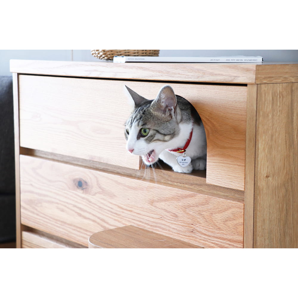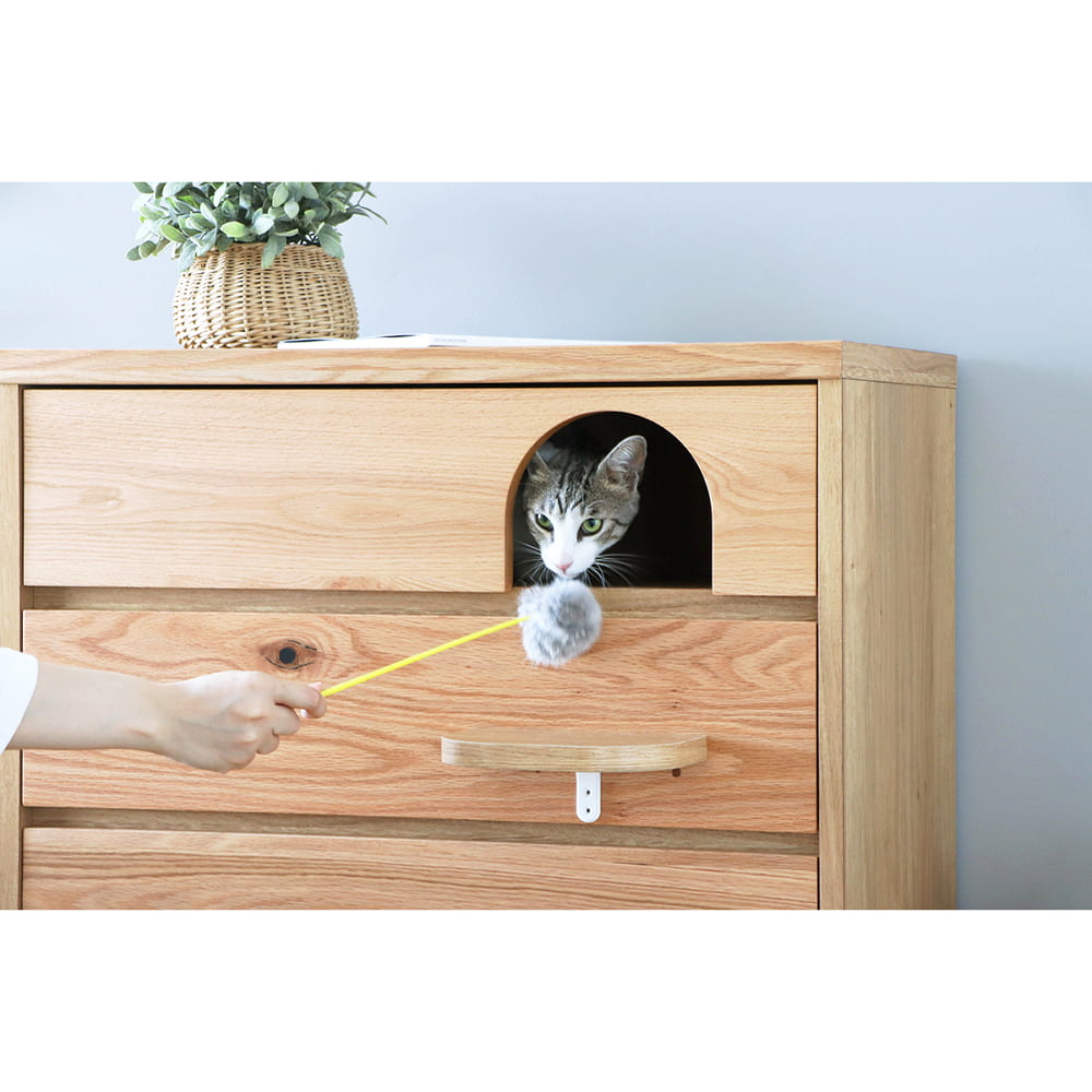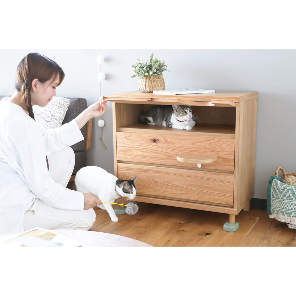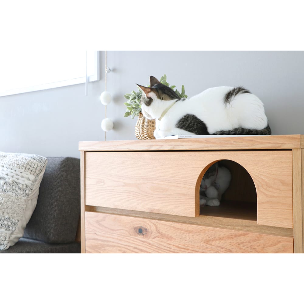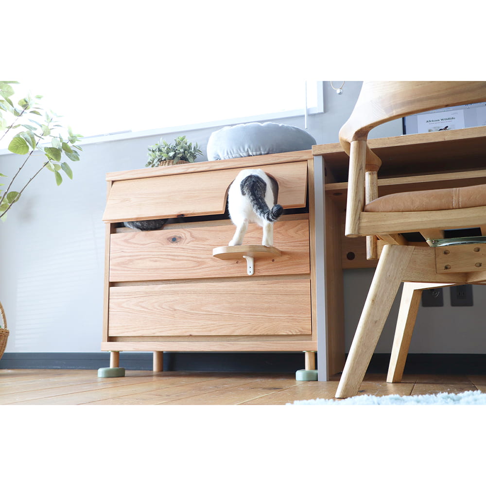 ◆天然木の温かみを感じる、ナチュラルデザインの収納アイテム。◆高い場所への登り降りが苦手な子や、猫ちゃんが素早く登れるように考えた階段状のデザインです。