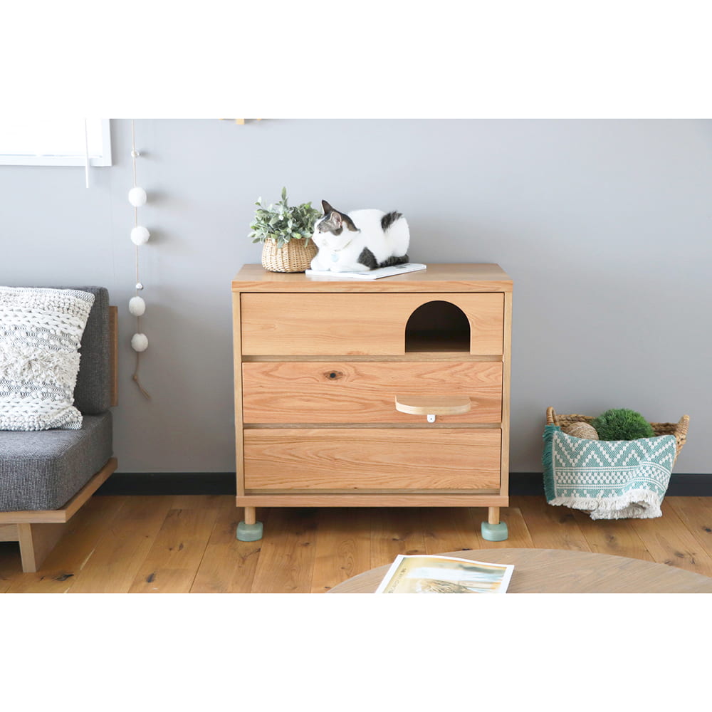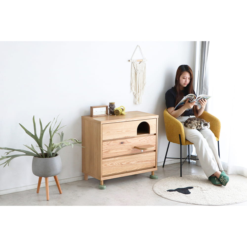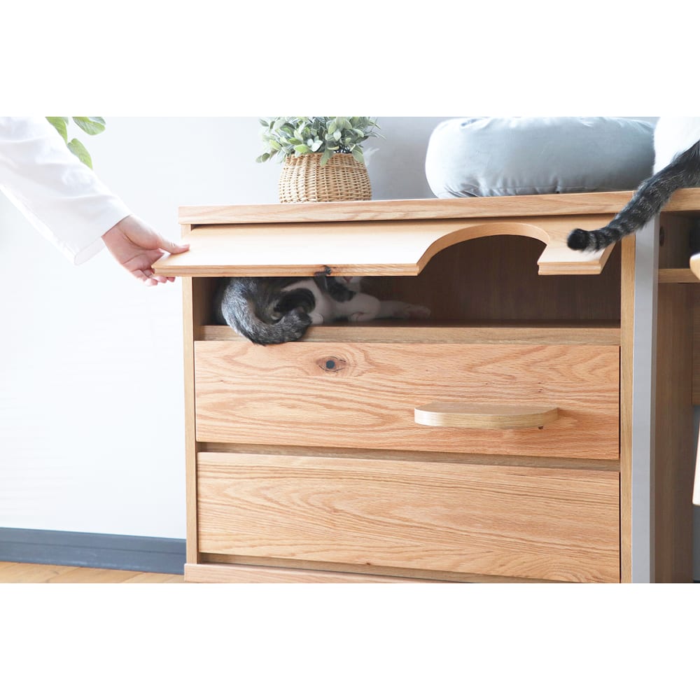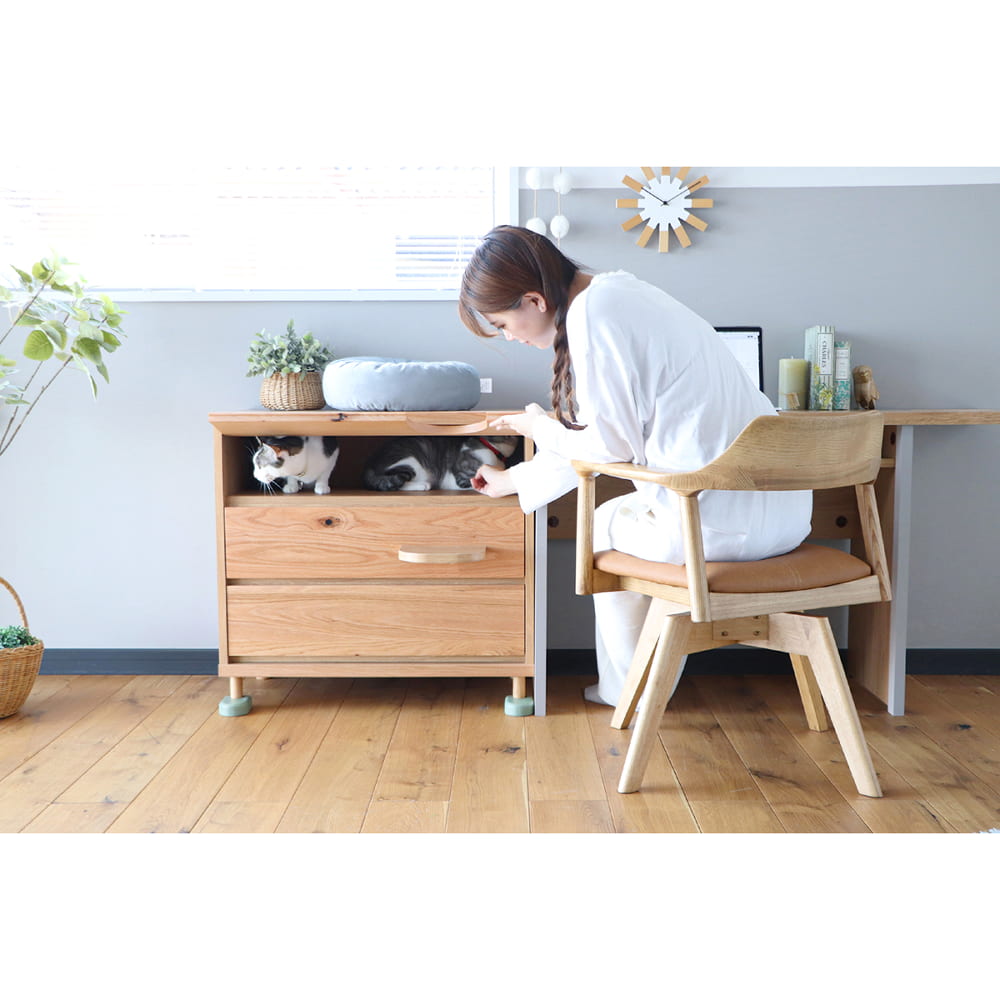 ◆天然木の温かみを感じる、ナチュラルデザインの収納アイテム。◆高い場所への登り降りが苦手な子や、猫ちゃんが素早く登れるように考えた階段状のデザインです。