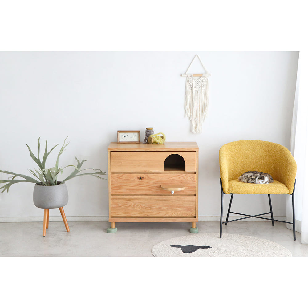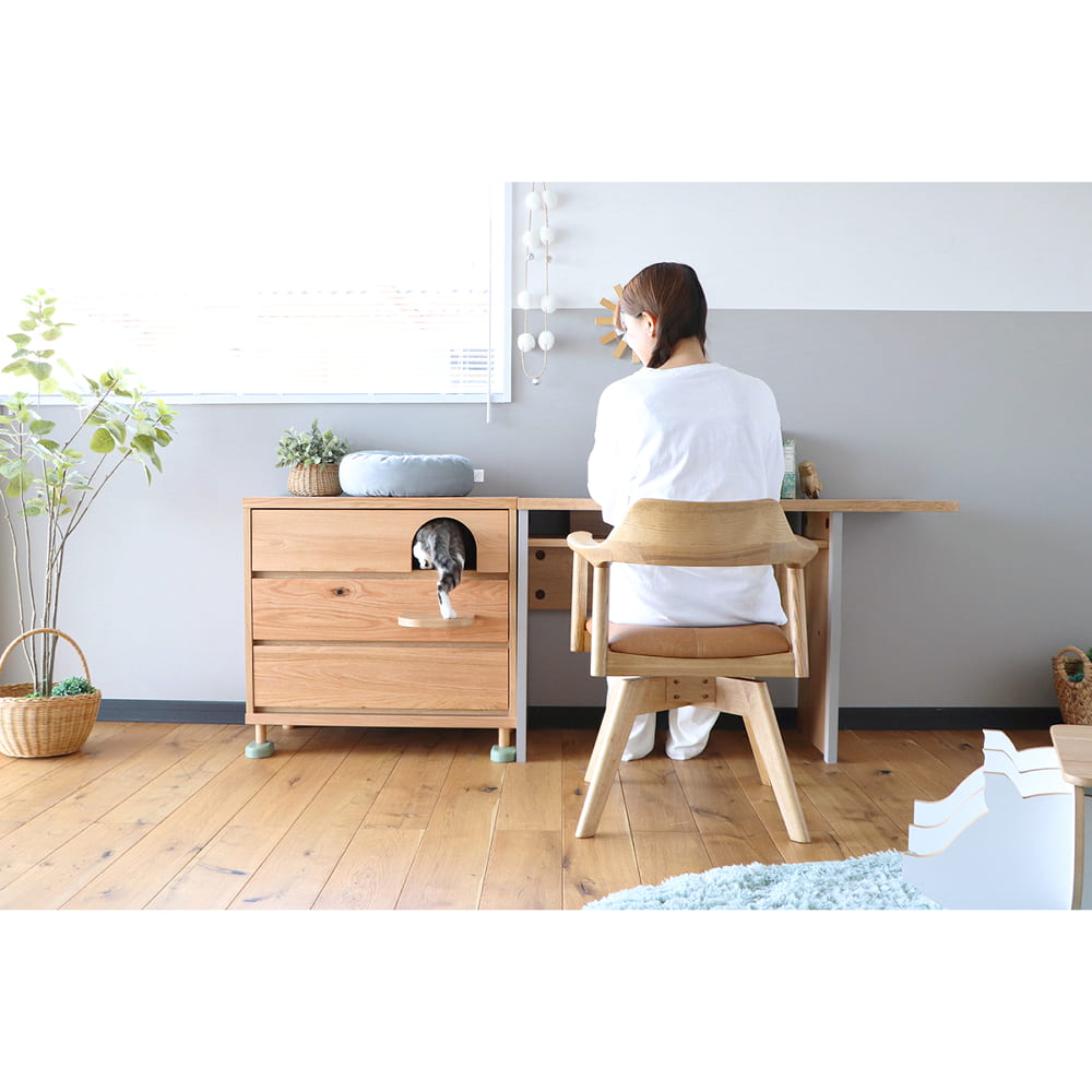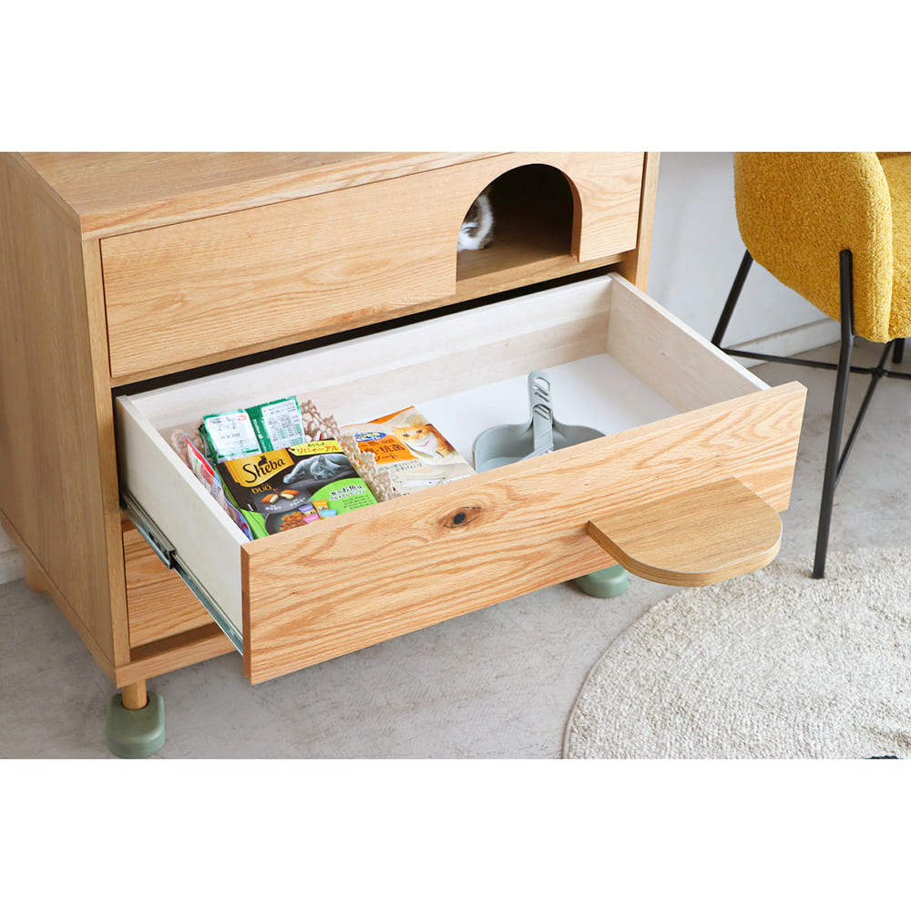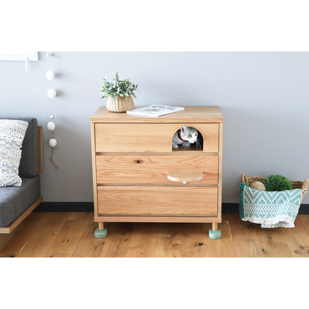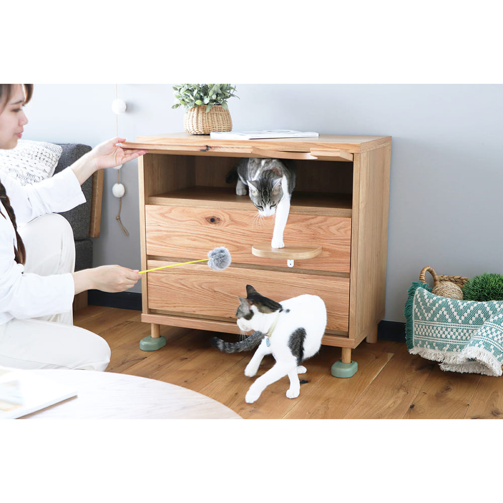◆天然木の温かみを感じる、ナチュラルデザインの収納アイテム。◆高い場所への登り降りが苦手な子や、猫ちゃんが素早く登れるように考えた階段状のデザインです。