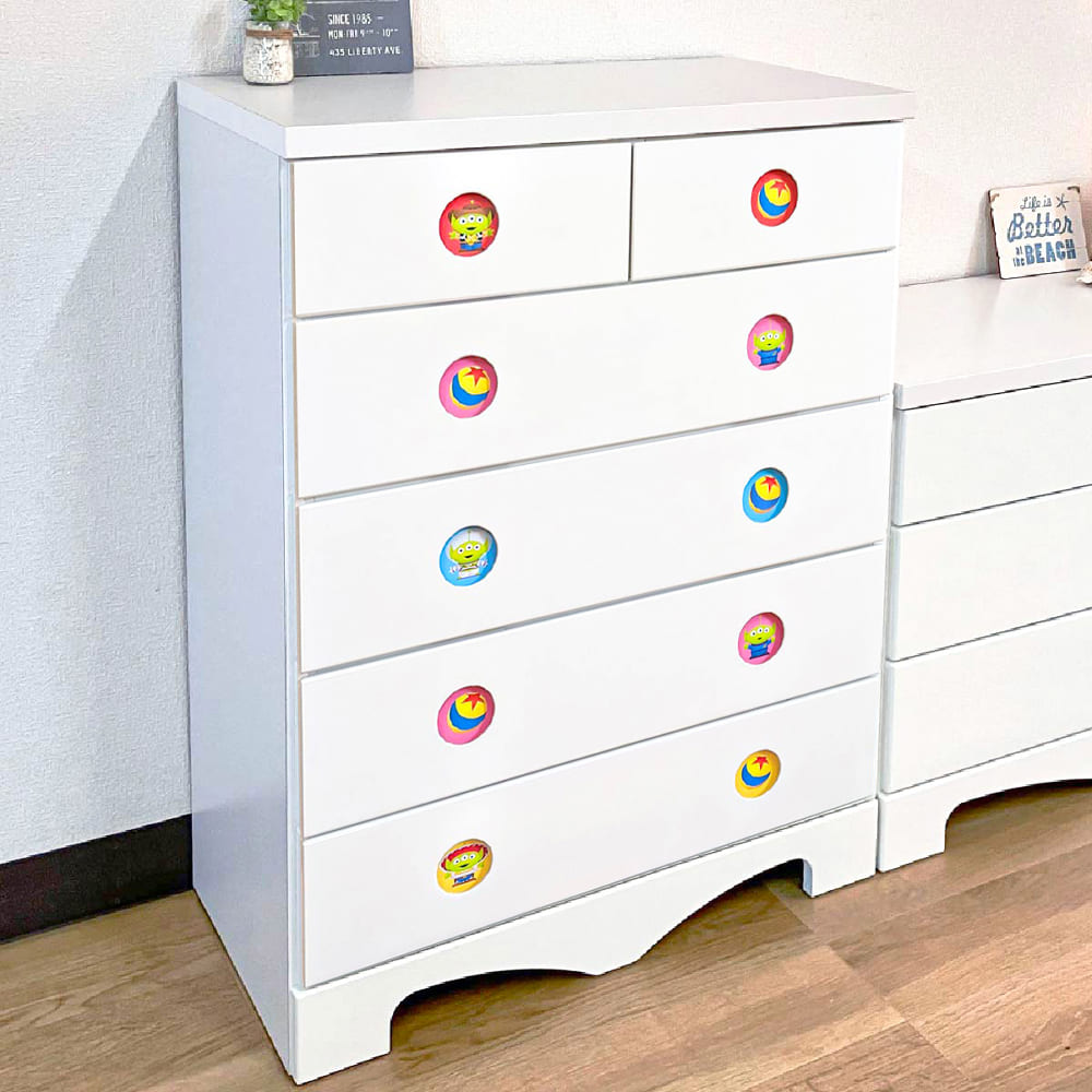 ◆ディズニーキャラクターのチェストシリーズ◆引手からキャラクターが見えるかわいいチェストです。好きな位置にパネルを入替可能です。