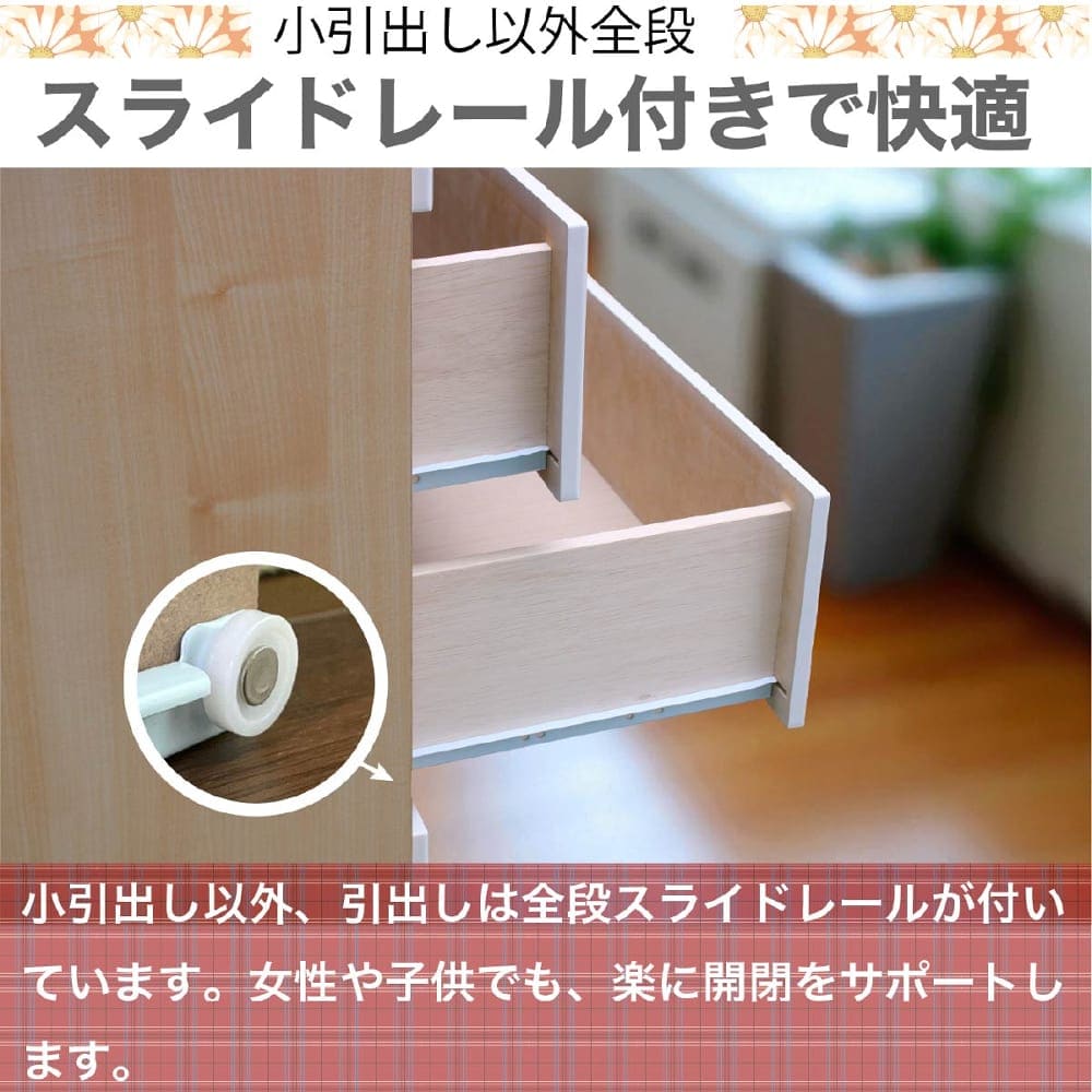 ◆最下段の大引出しはスライドレール仕様になっておりますので、女性やお子さまでもスムーズに開閉ができます。◆前面は、エナメル塗装仕上げとなっております。