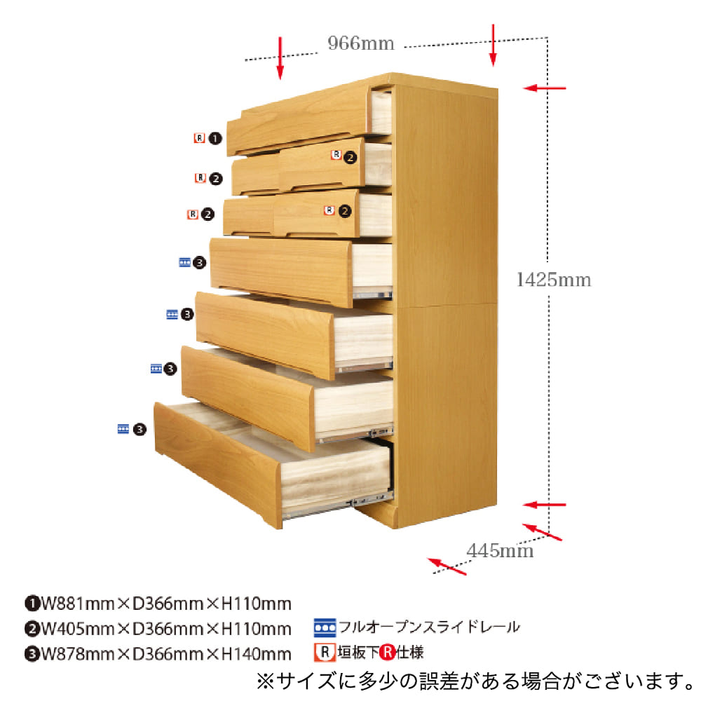 ◆下4段の大引出しはフルオープンレール仕様になっておりますので、スムーズに引出しが開閉できます◆引出しは、箱組になっておりますので、強度があり、耐久性に優れております