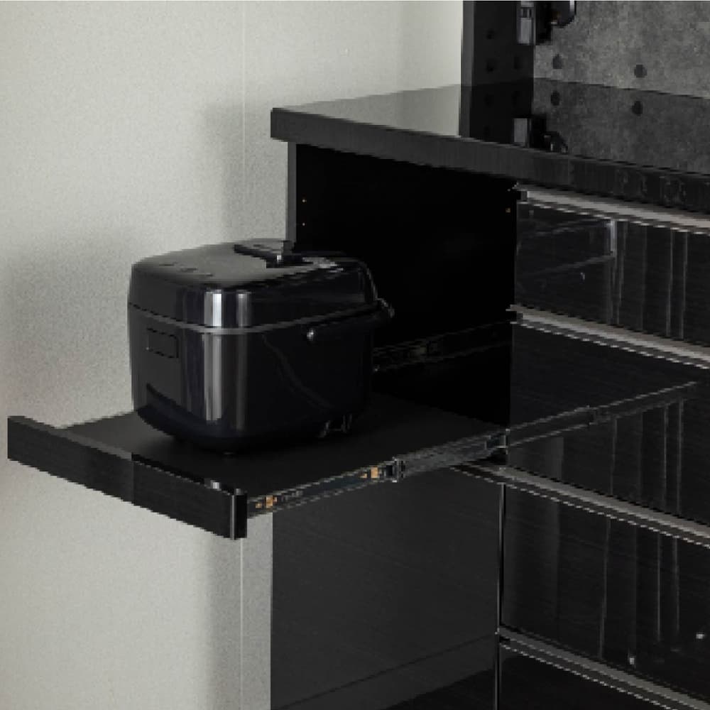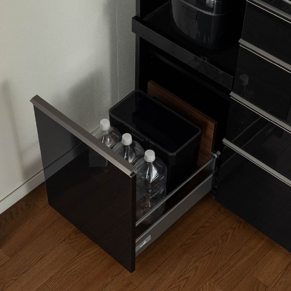 ◆最上級グレードASシリーズをイノテック引出仕様のハイグレード一体型にした商品です。◆アウトセット引戸の上台はアルミフレームをきわめて薄くした、軽さとスタイリッシュさを追求した上台です。
