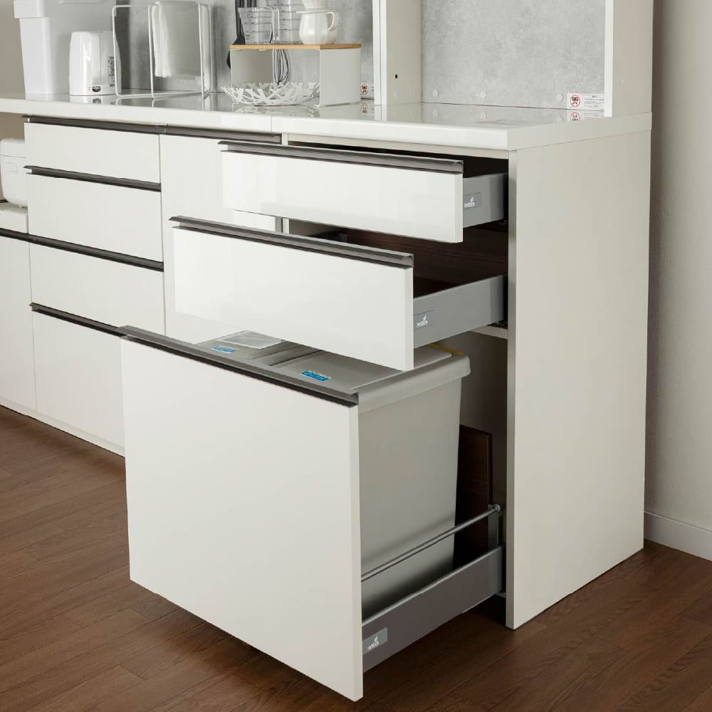◆最上級グレードASシリーズをイノテック引出仕様のハイグレード一体型にした商品です。◆アウトセット引戸の上台はアルミフレームをきわめて薄くした、軽さとスタイリッシュさを追求した上台です。