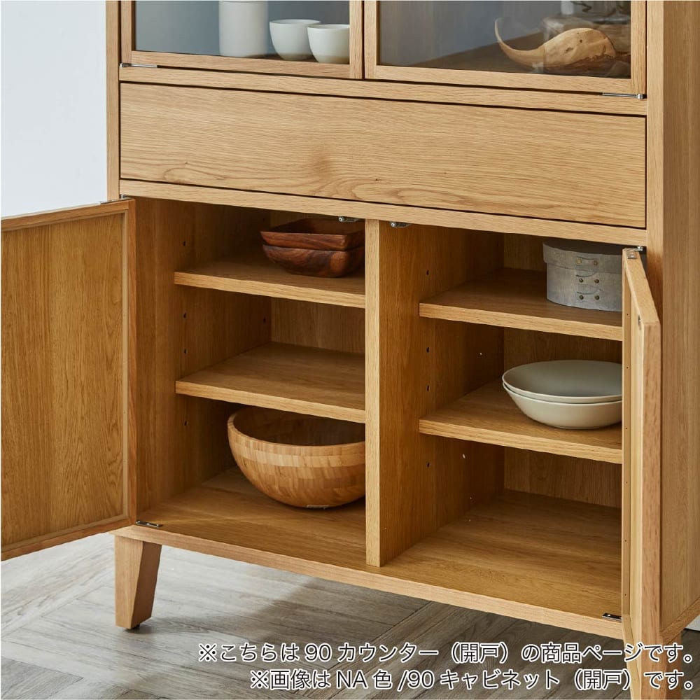 ◆90開戸カウンター 棚板枚数/左右開き戸内可動棚各2枚