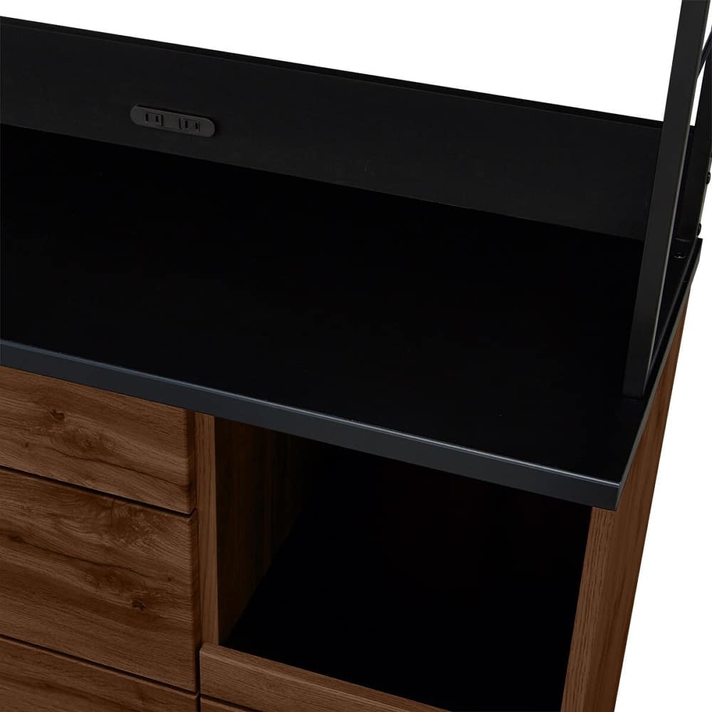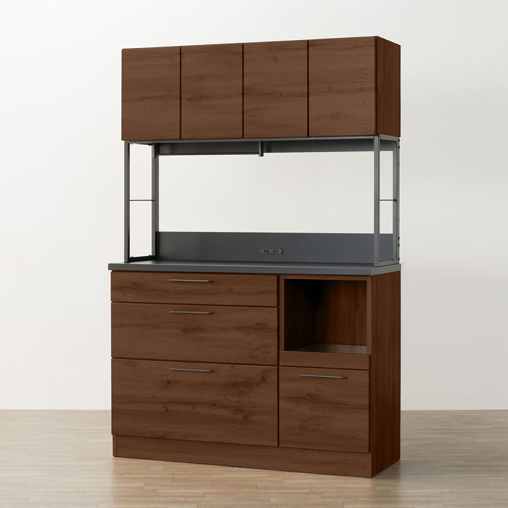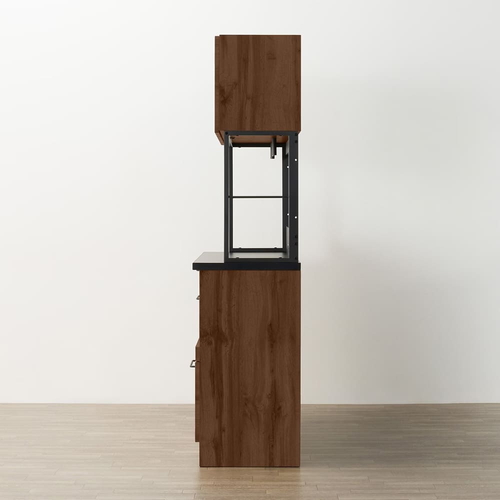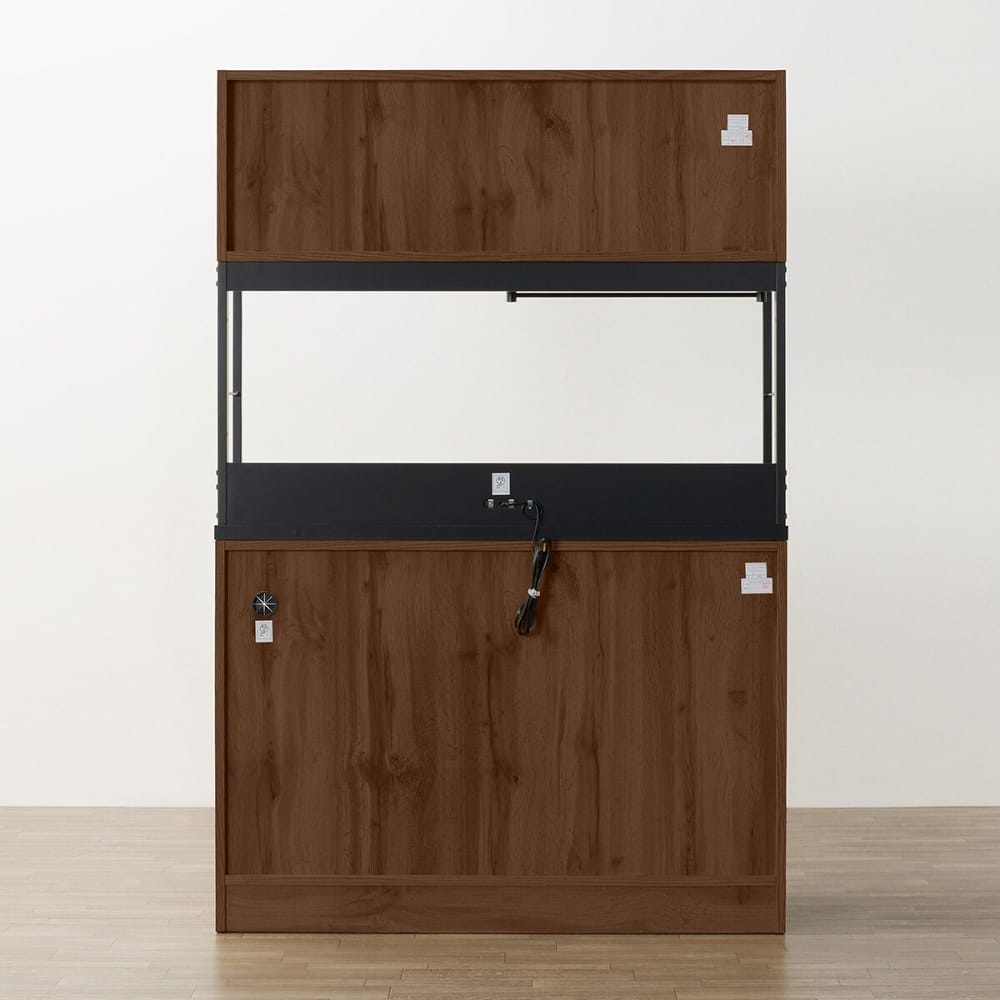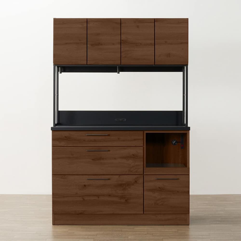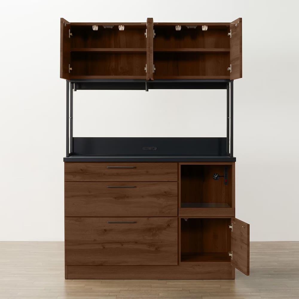 ◆また、下段は炊飯器など蒸気の出る調理家電の設置に便利なスライドテーブル式を採用。コンセントは中段部分に2口、さらに下段のオープンスペースにも付いているので、電子レンジやトースター、炊飯器や電気ポットなど複数の家電を同時に使いやすく、配線もすっきりまとめることができます。使う場所の近くにコンセントがあることで、コードがごちゃつかず、見た目もきれいに整います。