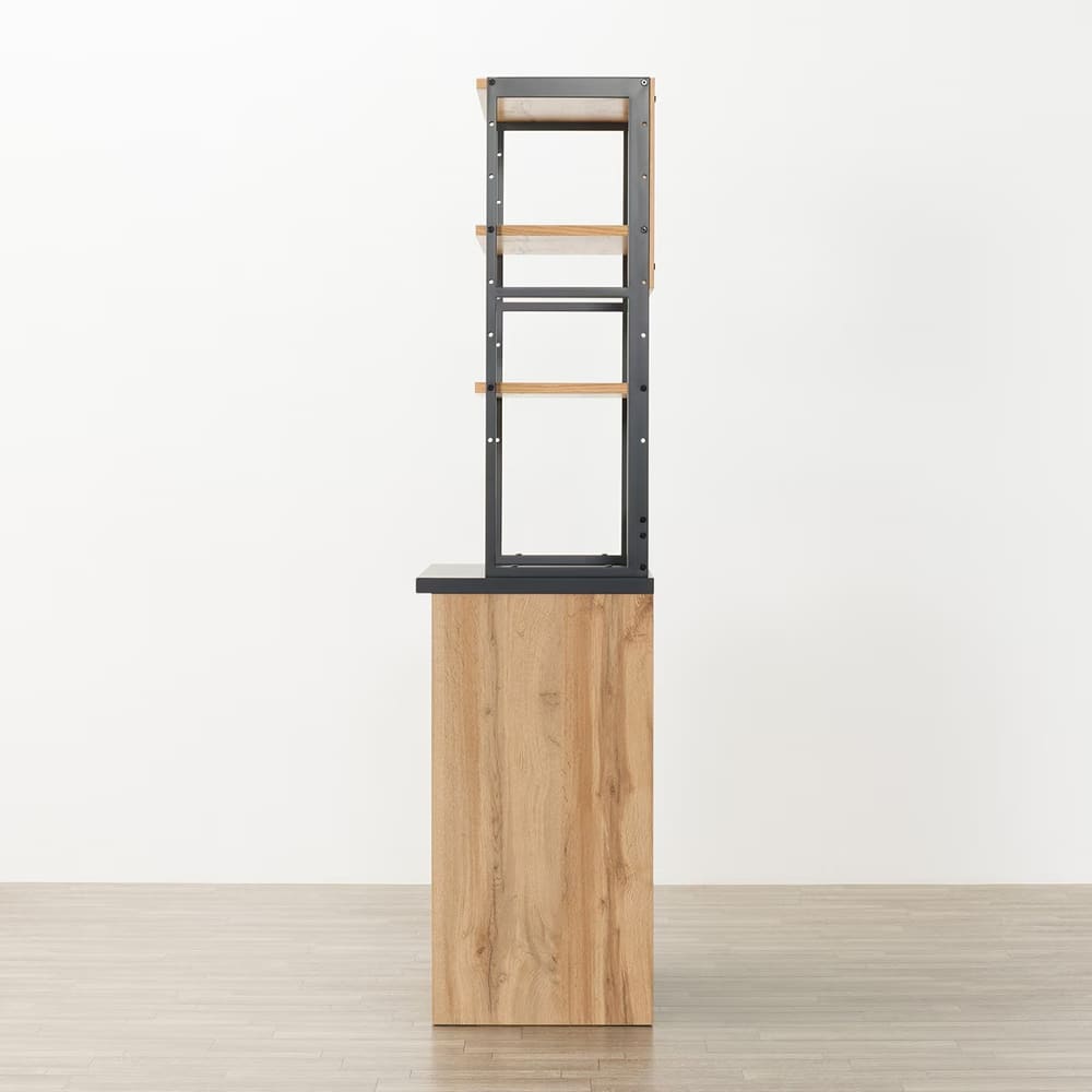 ◆木目とブラックカラーを組み合わせた、モダンなデザインのキッチンボードです。ヴィンテージ風やカフェ風など、お好みに合わせて自由にコーディネートできるのが魅力です。◆高さを抑えたコンパクトタイプで、上台収納にも手が届きやすい仕様です。