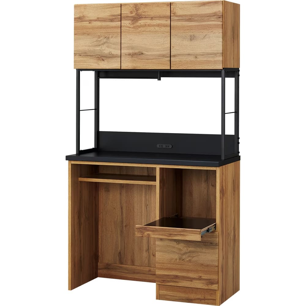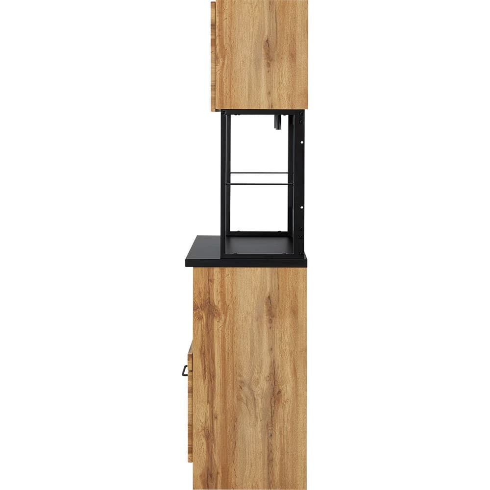 ◆木目とブラックカラーを組み合わせた、モダンなデザインのキッチンボードです。ヴィンテージ風やカフェ風など、お好みに合わせて自由にコーディネートできるのが魅力です。◆高さを抑えたコンパクトタイプで、上台収納にも手が届きやすい仕様です。