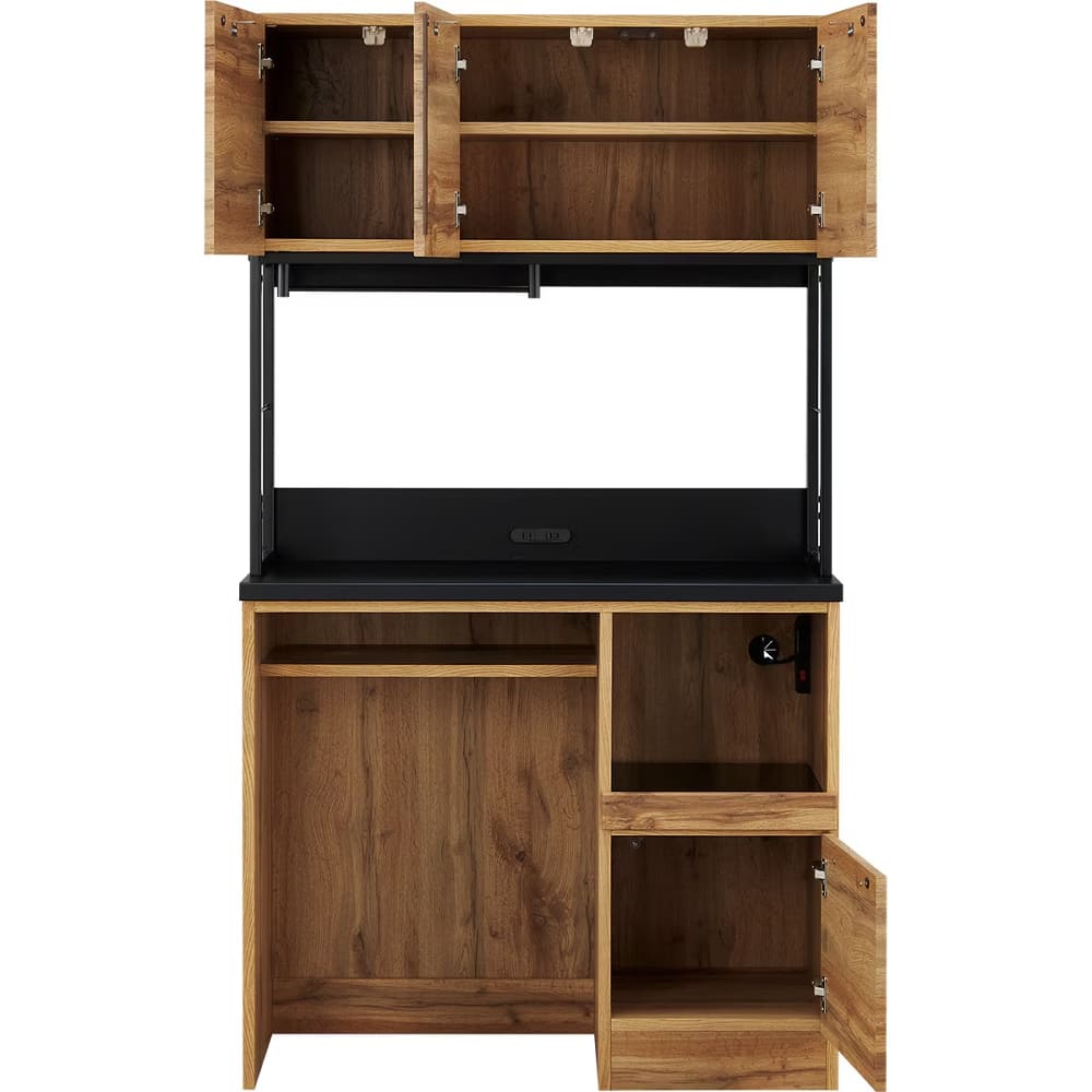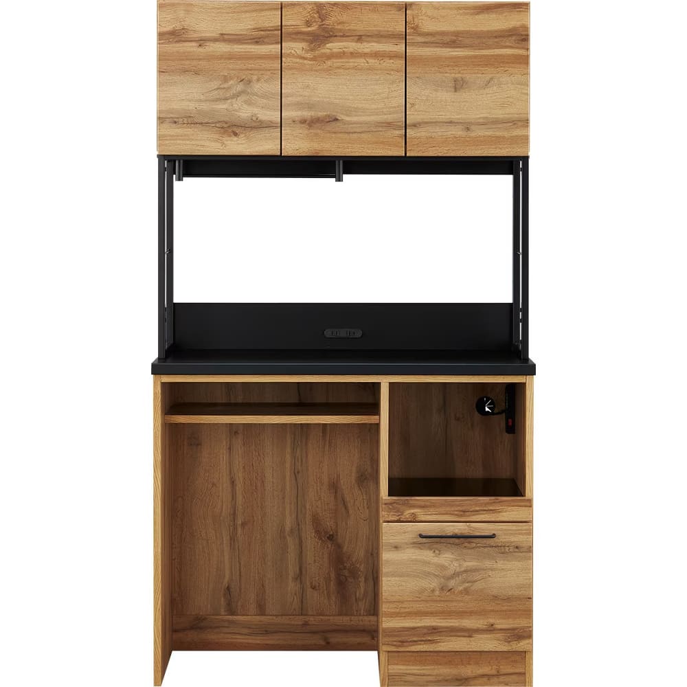 ◆また、下段は炊飯器など蒸気の出る調理家電の設置に便利なスライドテーブル式を採用。コンセントは中段部分に2口、さらに下段のオープンスペースにも付いているので、電子レンジやトースター、炊飯器や電気ポットなど複数の家電を同時に使いやすく、配線もすっきりまとめることができます。使う場所の近くにコンセントがあることで、コードがごちゃつかず、見た目もきれいに整います。