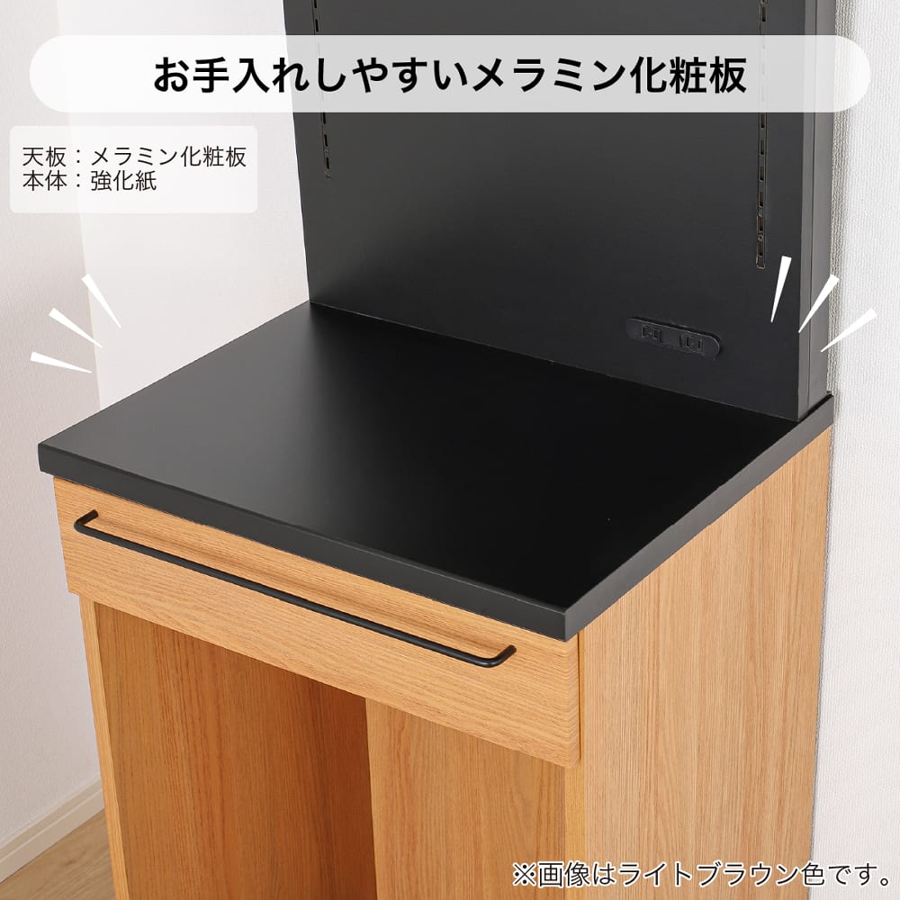◆天板には傷や熱に強いメラミン化粧板を採用。毎日のお手入れも簡単にできます。
