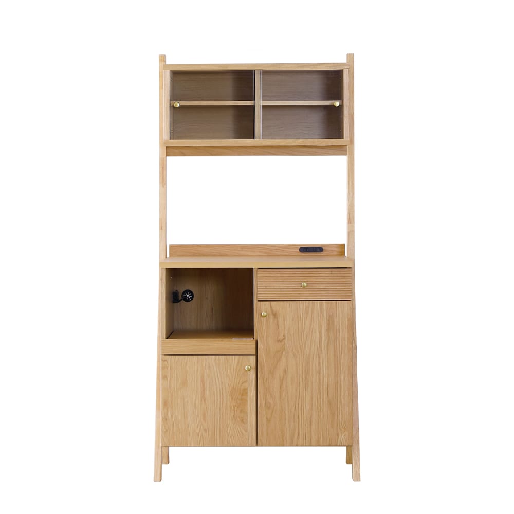 ◆天然木無垢と突板の質感の良いデザイン性のある食器棚です。◆開き戸はゆっくりと閉まるダンパー丁番を使用しております。