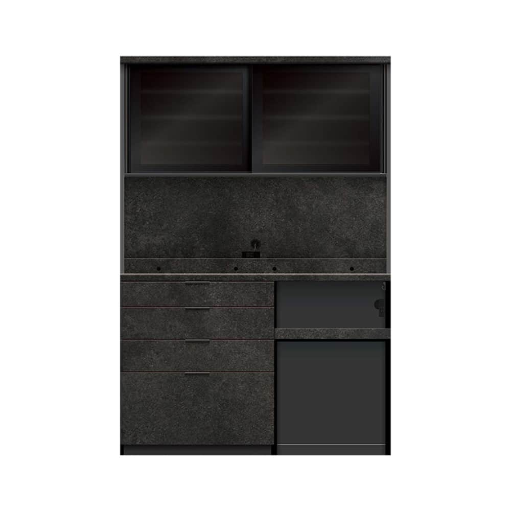 ◆下台の引手はブラック引手で、引出し内装はダークグレー色になります。