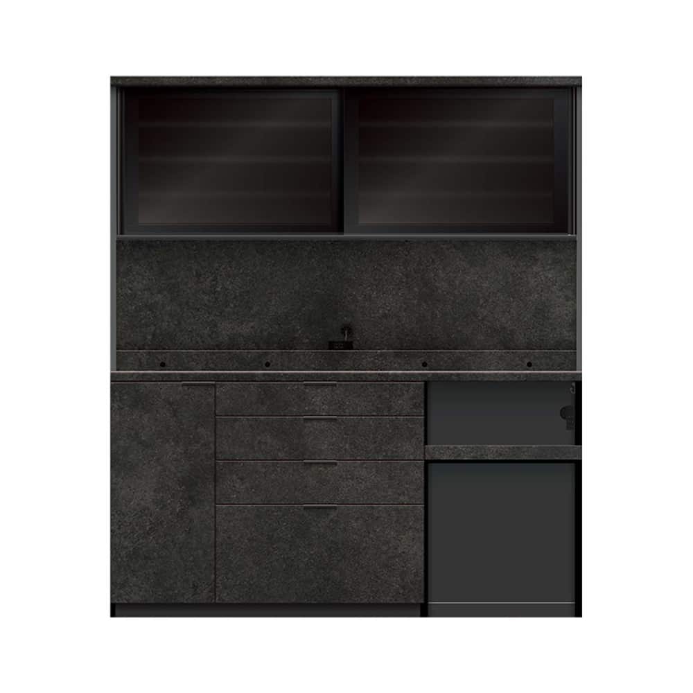 ◆下台の引手はブラック引手で、引出し内装はダークグレー色になります。