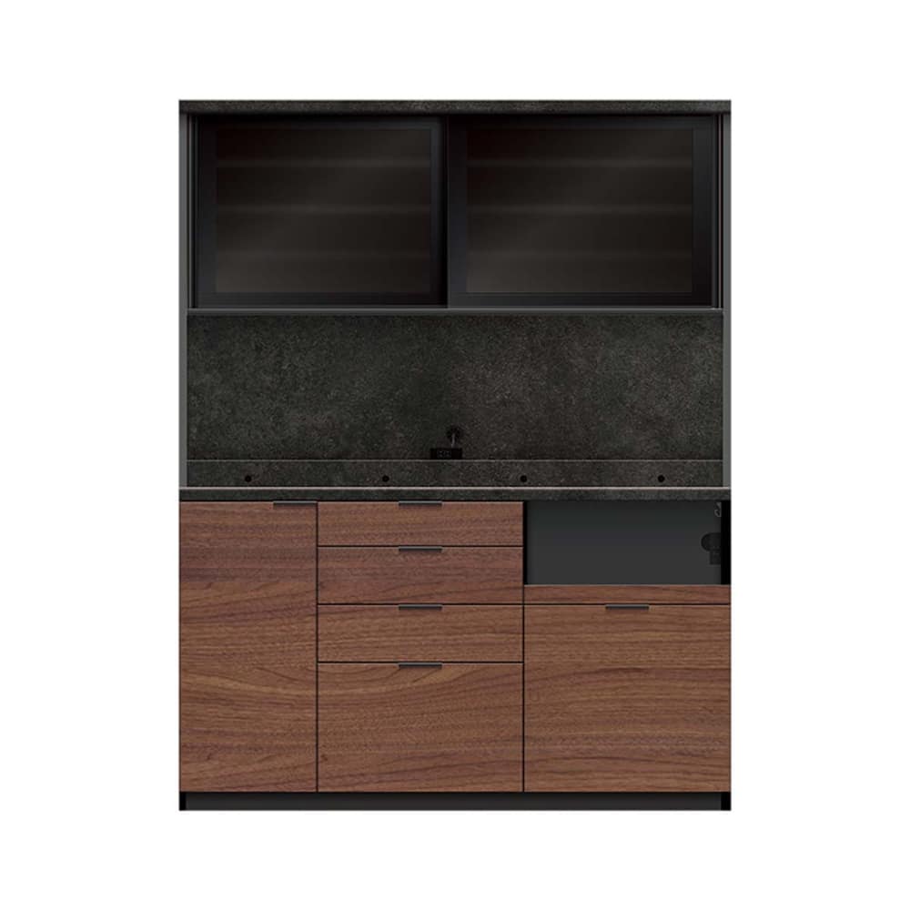◆下台の引手はブラック引手で、引出し内装はダークグレー色になります。