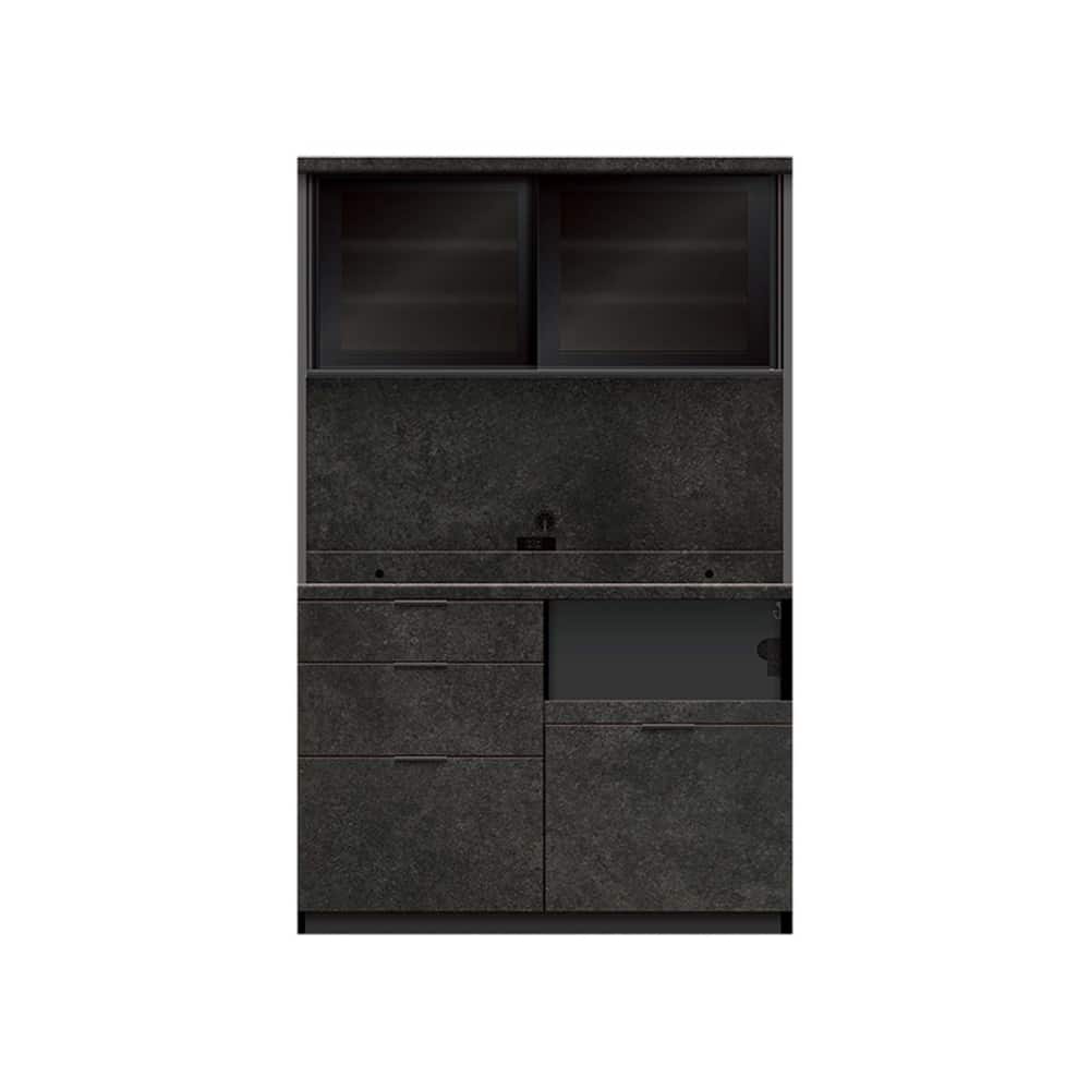 ◆下台の引手はブラック引手で、引出し内装はダークグレー色になります。