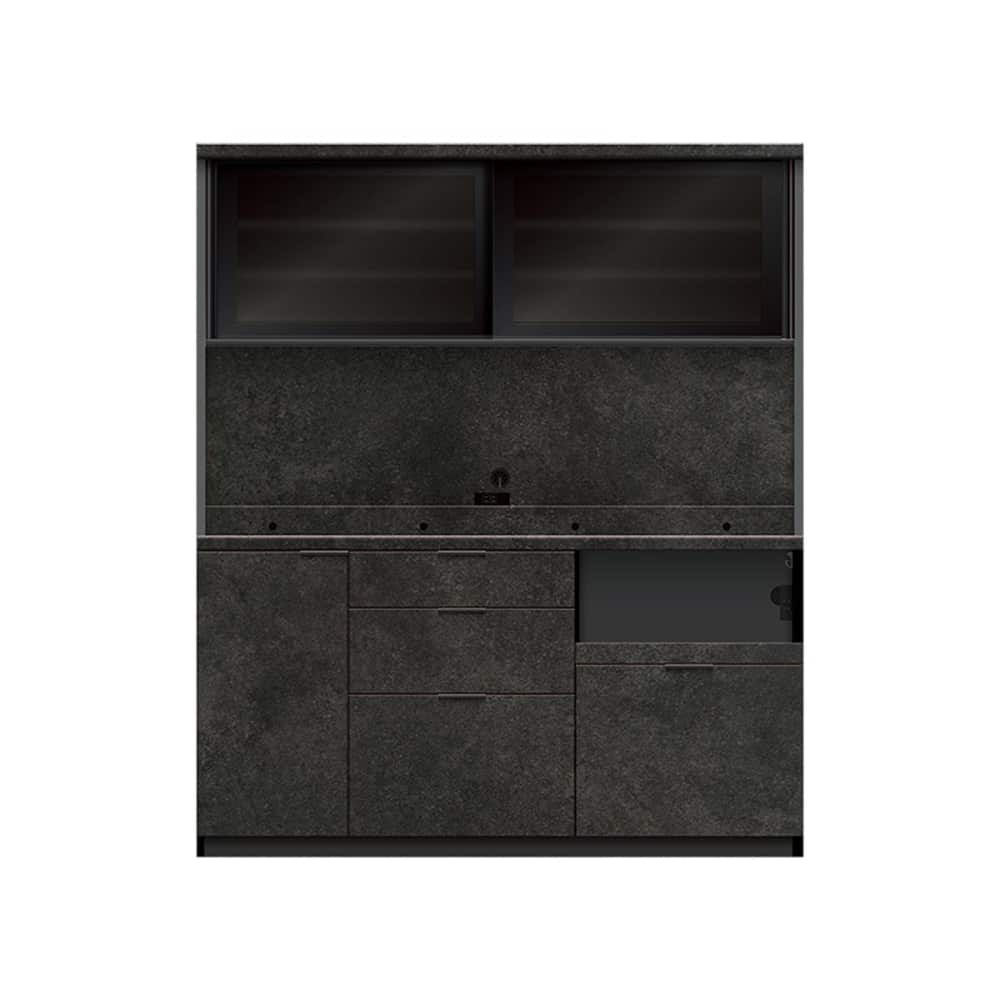 ◆下台の引手はブラック引手で、引出し内装はダークグレー色になります。