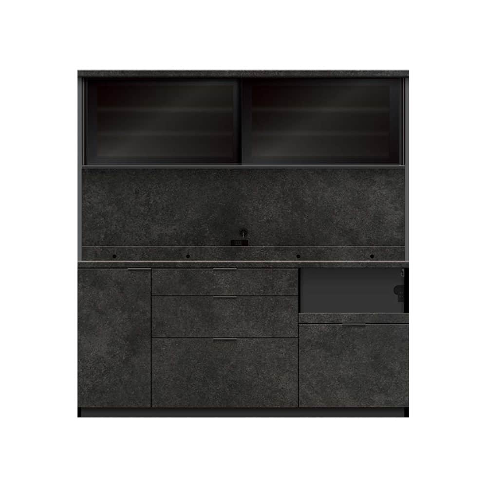 ◆下台の引手はブラック引手で、引出し内装はダークグレー色になります。