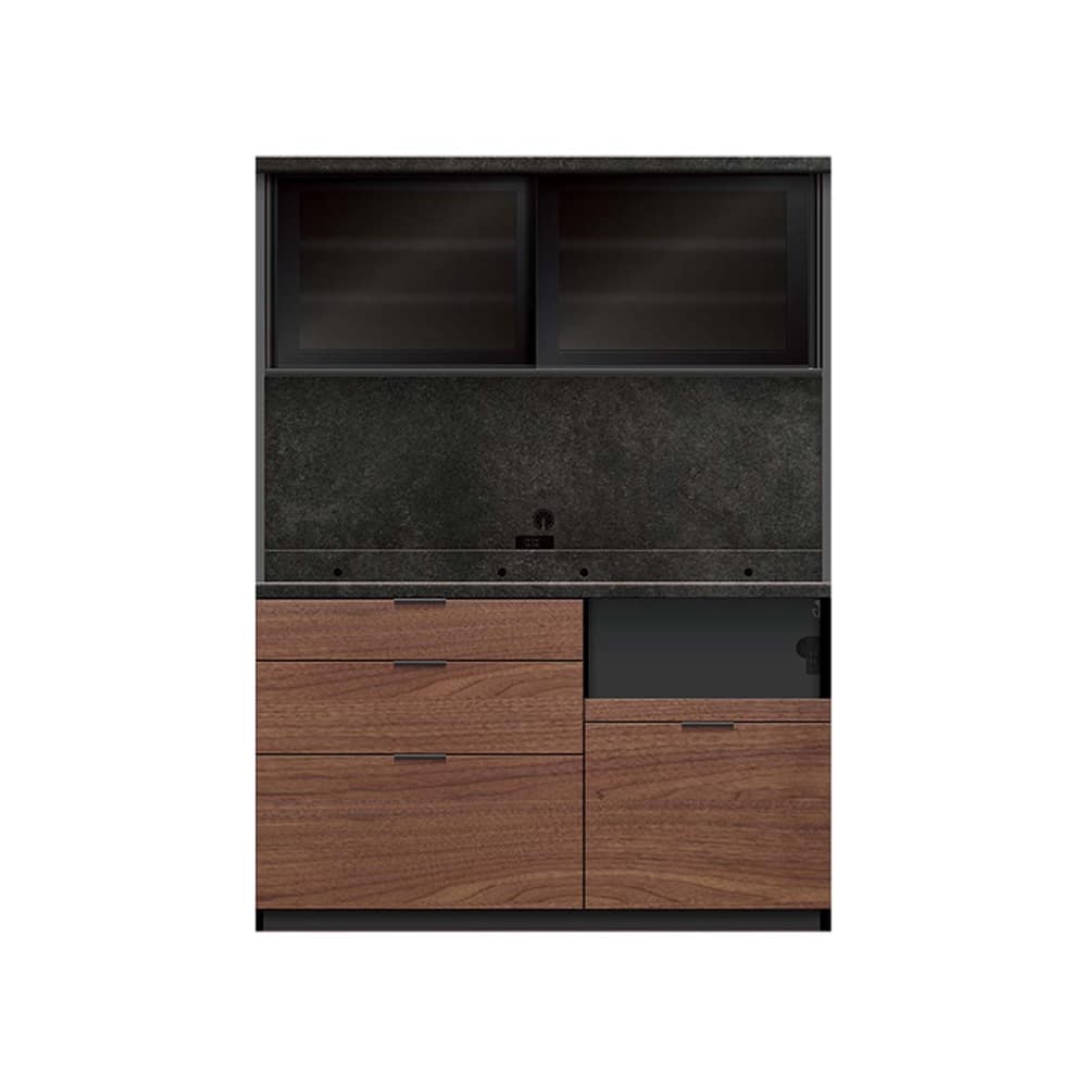◆下台の引手はブラック引手で、引出し内装はダークグレー色になります。