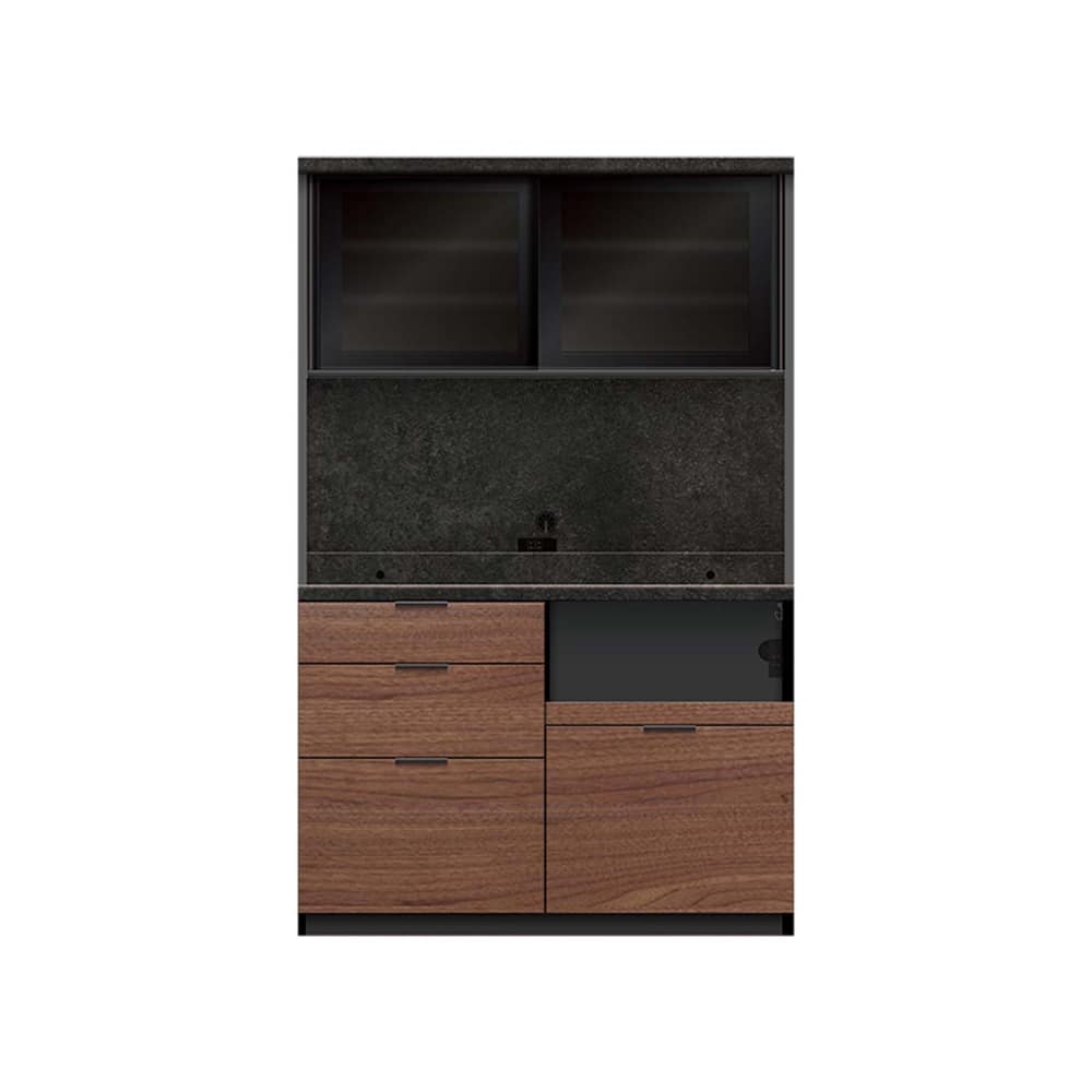 ◆下台の引手はブラック引手で、引出し内装はダークグレー色になります。