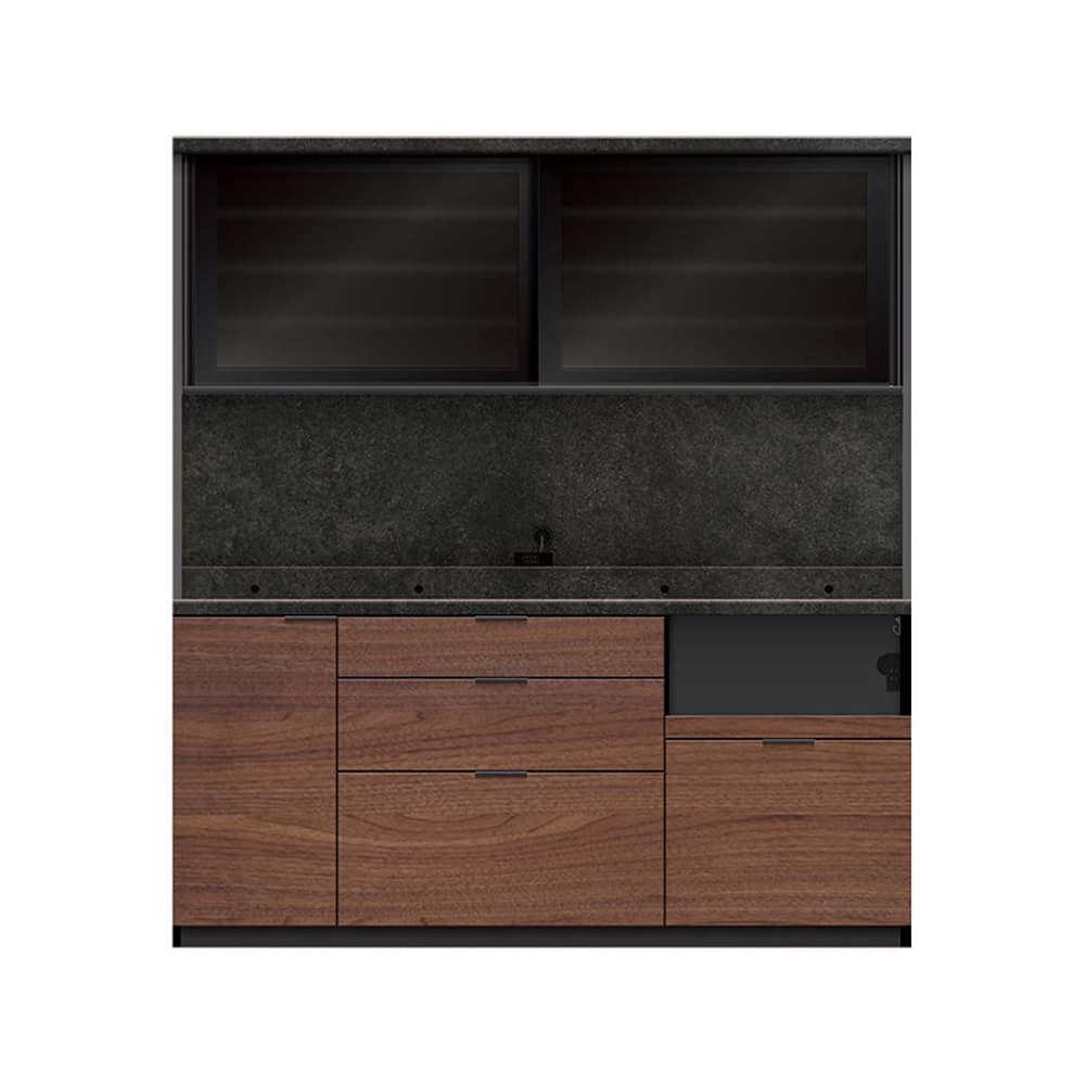 ◆下台の引手はブラック引手で、引出し内装はダークグレー色になります。