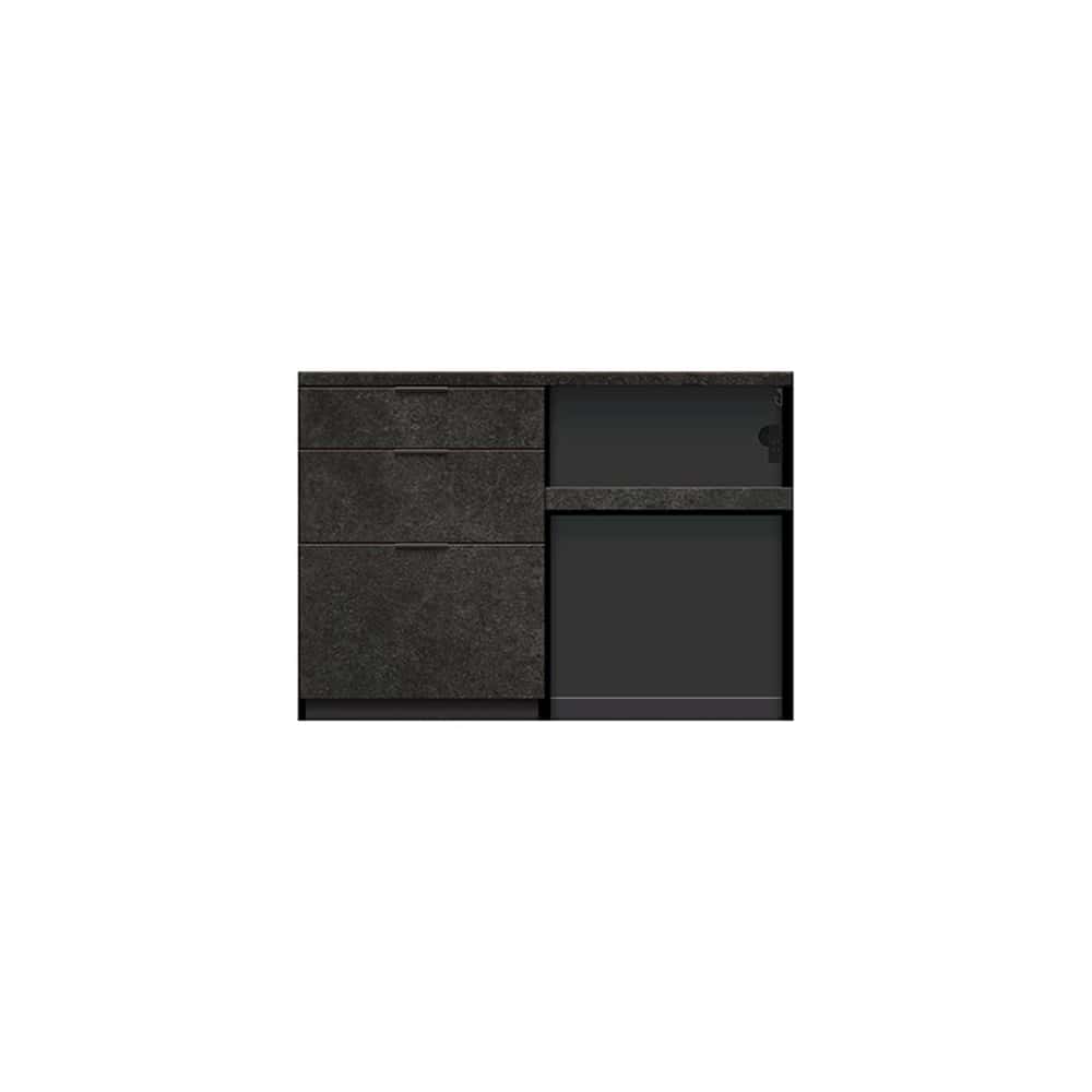 ◆下台の引手はブラック引手で、引出し内装はダークグレー色になります。