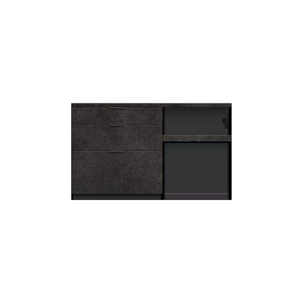 ◆下台の引手はブラック引手で、引出し内装はダークグレー色になります。