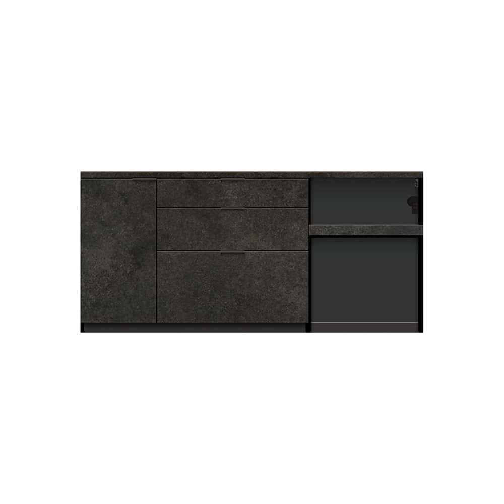 ◆下台の引手はブラック引手で、引出し内装はダークグレー色になります。