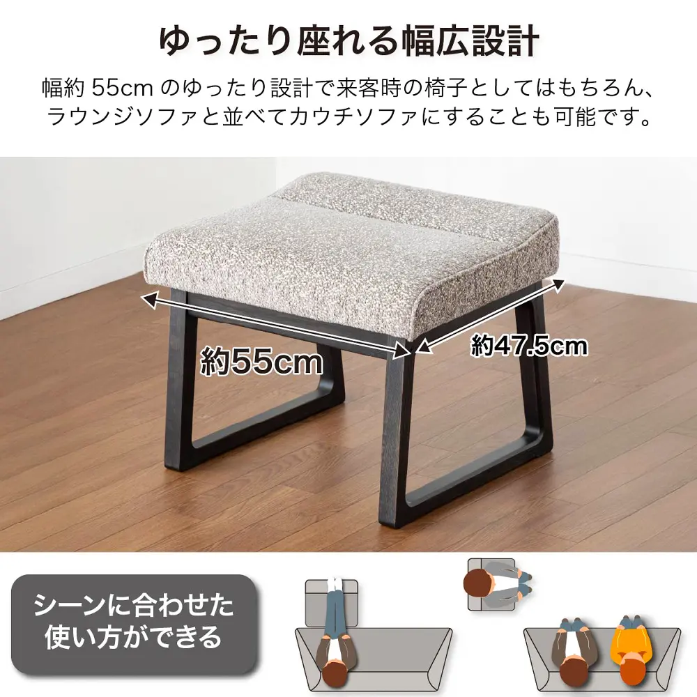 | 材質: | 脚:レッドオーク材 張地:布 |