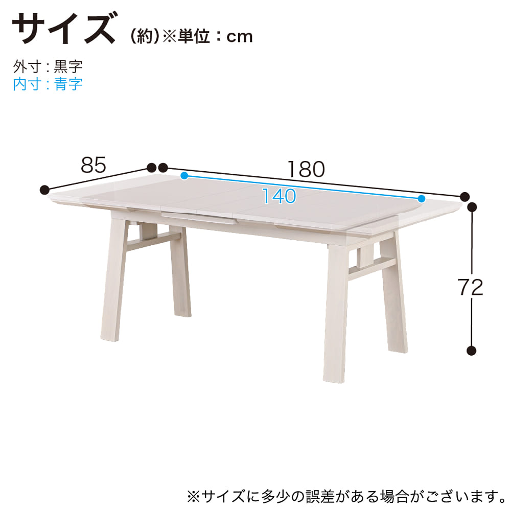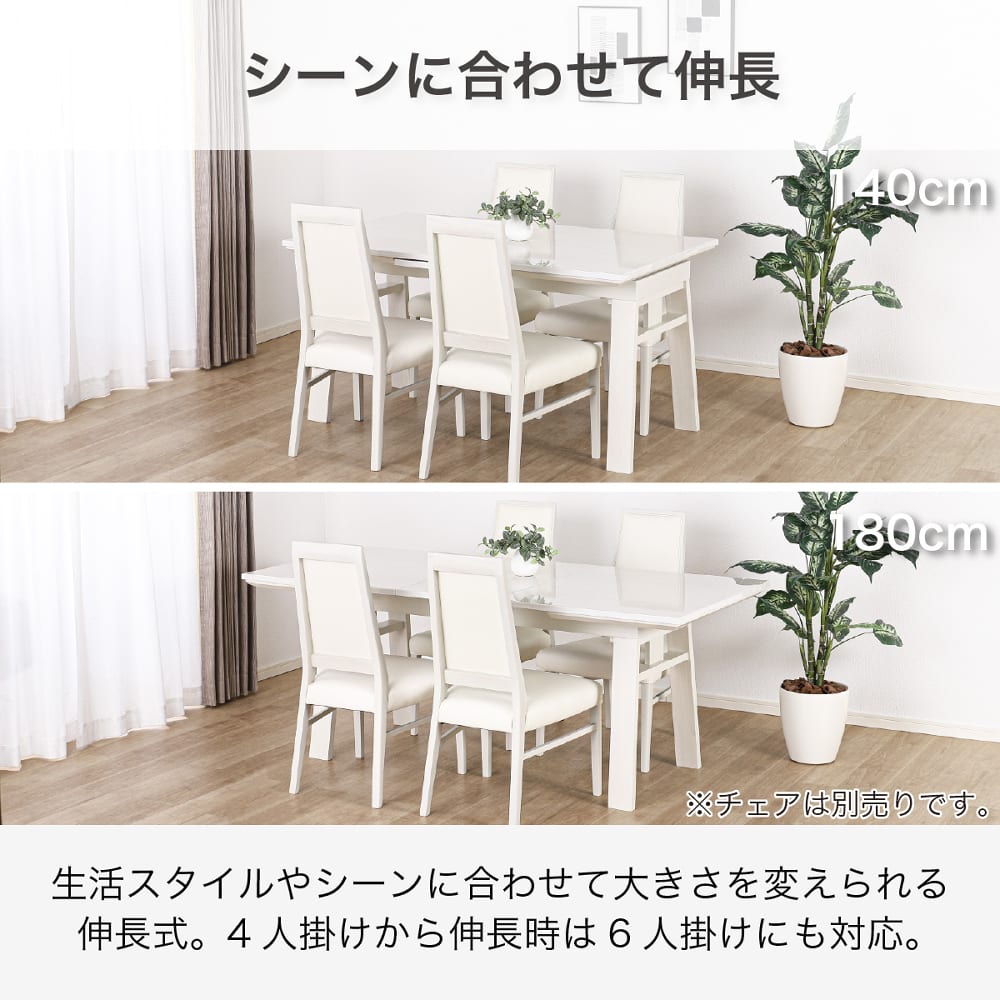 伸長式ダイニングテーブル SHIFT2 EX(140/180) WH[ホームズオリジナル]
