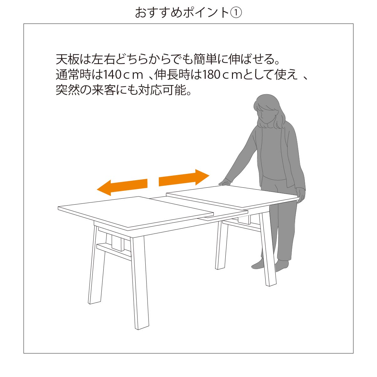 通常時は140cm、伸長時は180cmとして使え、突然の来客にも対応可能。