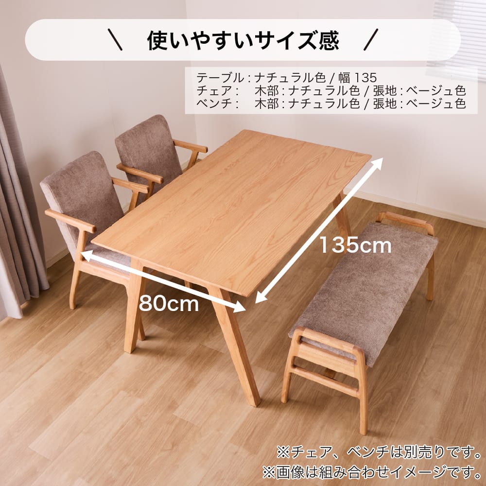 - ・ サイズ:135cm幅、 タイプ:テーブル、 カラー:ナチュラル
