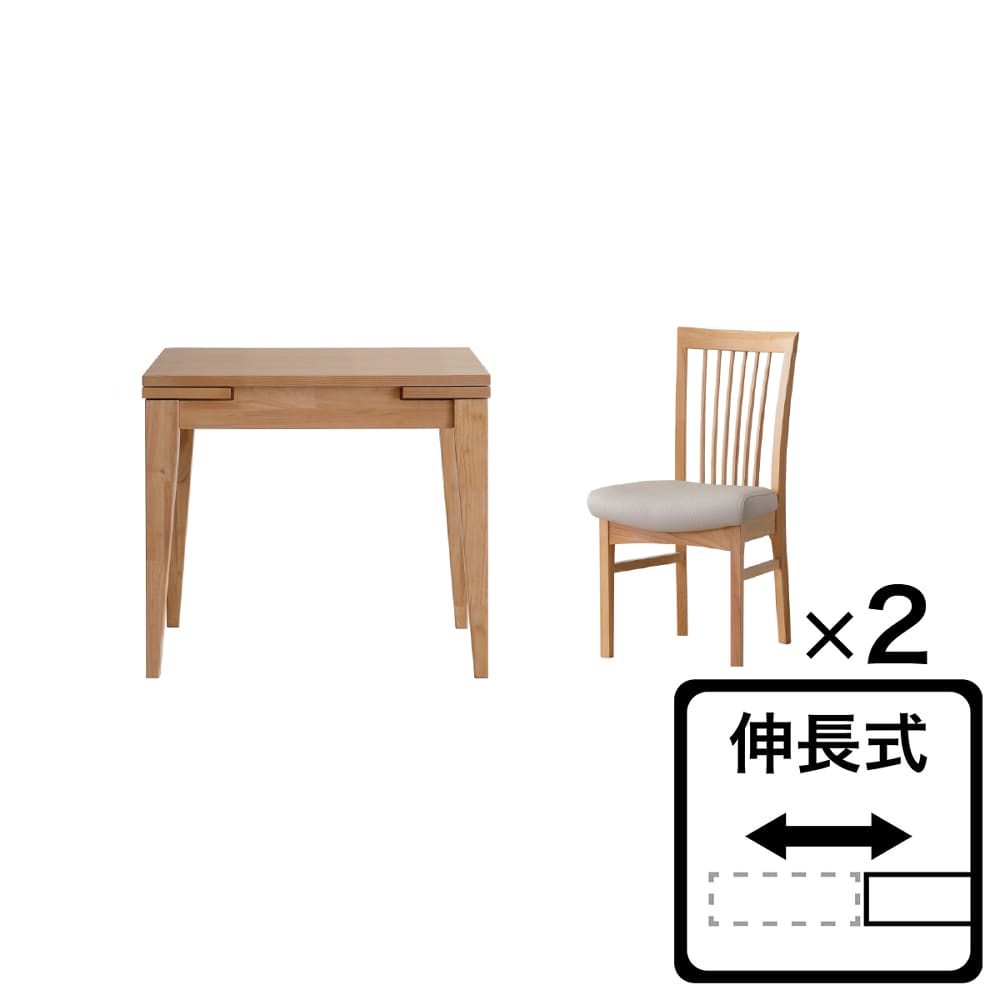 伸長式ダイニング3点セット カロル 80/チェア カロル LBR
