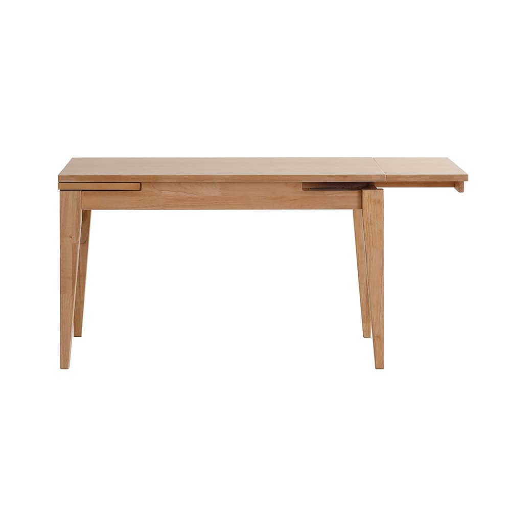 ◆左右に収納されている伸張天板をセットすることで3段階で伸張可能です。◆サイズも80と120の2サイズあり2人用などのコンパクトな伸張式を探されている方へもご提案可能。