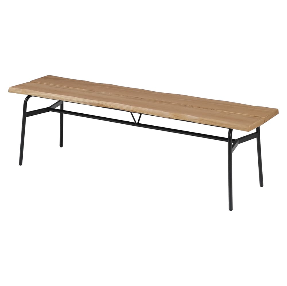 ◆側面はノタ面を使用しており、一枚板のような風合いのベンチです◆スタイリッシュな脚はL字のデザインになっており通常とは異なるデザインを楽しめます