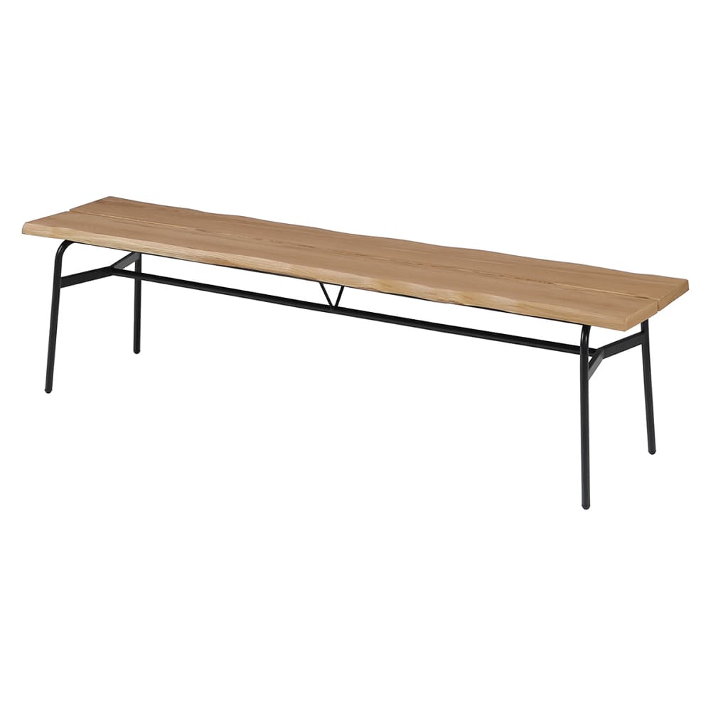 ◆側面はノタ面を使用しており、一枚板のような風合いのベンチです◆スタイリッシュな脚はL字のデザインになっており通常とは異なるデザインを楽しめます