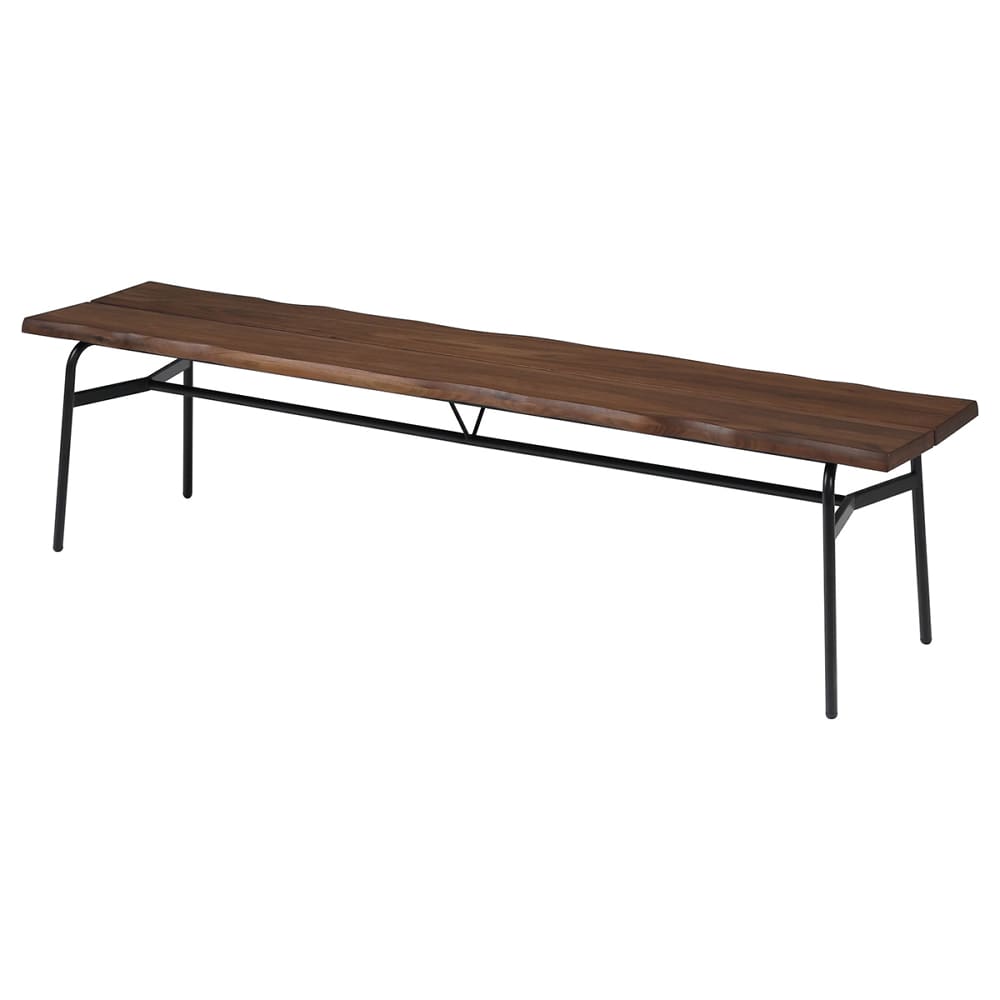◆側面はノタ面を使用しており、一枚板のような風合いのベンチです◆スタイリッシュな脚はL字のデザインになっており通常とは異なるデザインを楽しめます