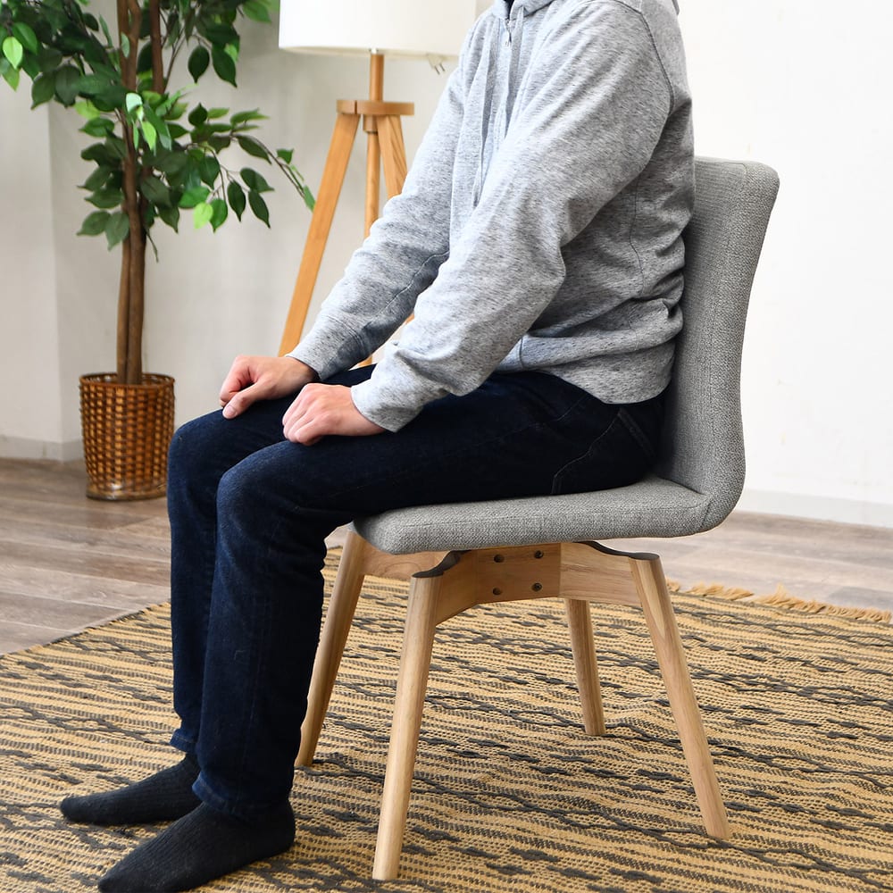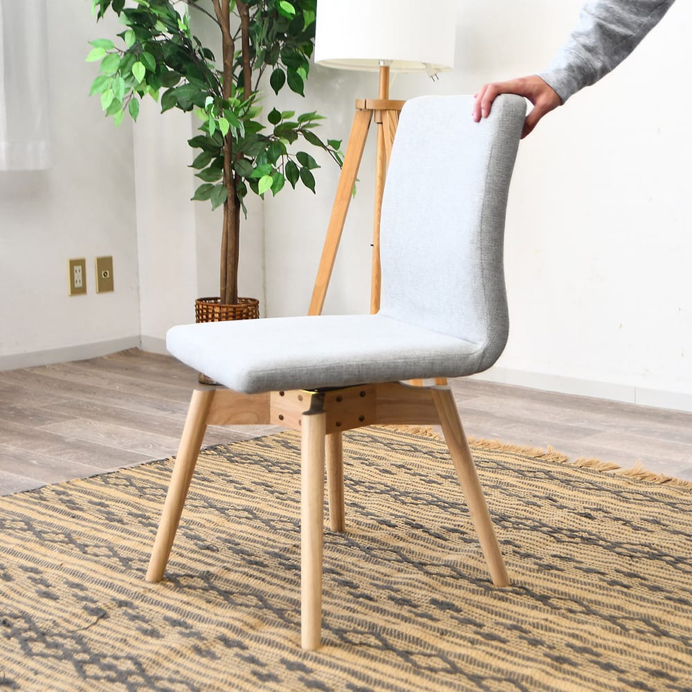◆チェアーは、360°回転します。◆チェアーベンチの張地は、ナチュラル色にマッチしたグレー色のファブリックを採用しました。