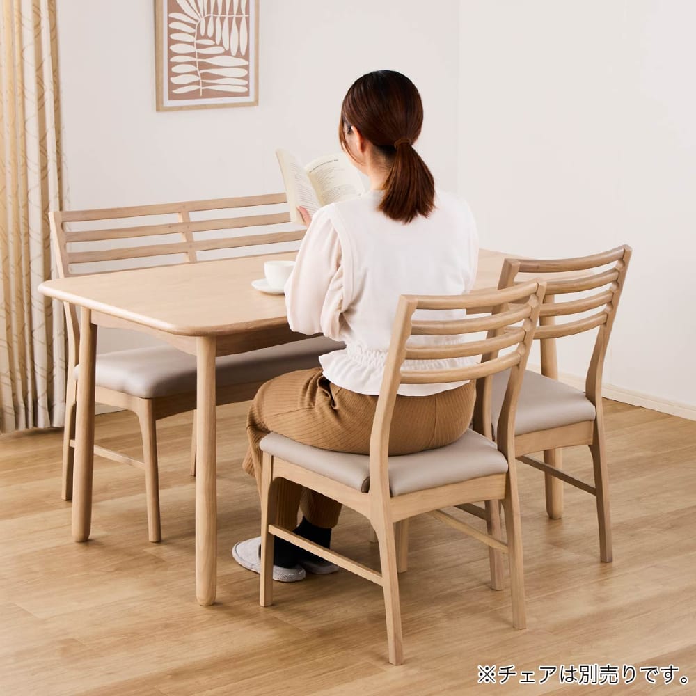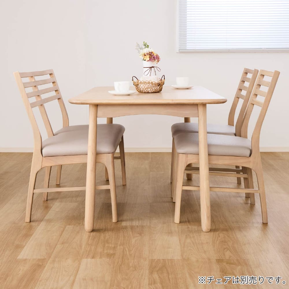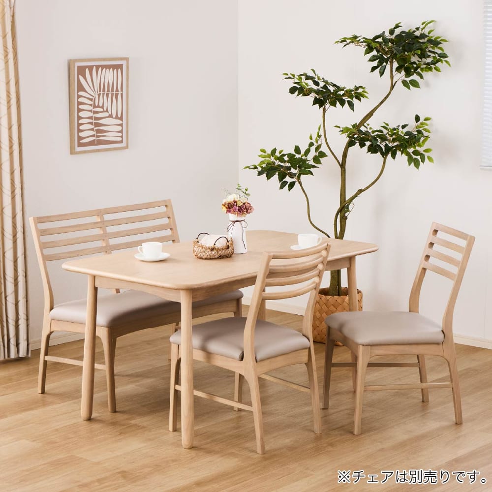 ◆天板にはホワイトオーク突板を使用。高級感のある木目が特徴。◆脚にはラバーウッド材を使用。丸みのあるやさしいデザイン。