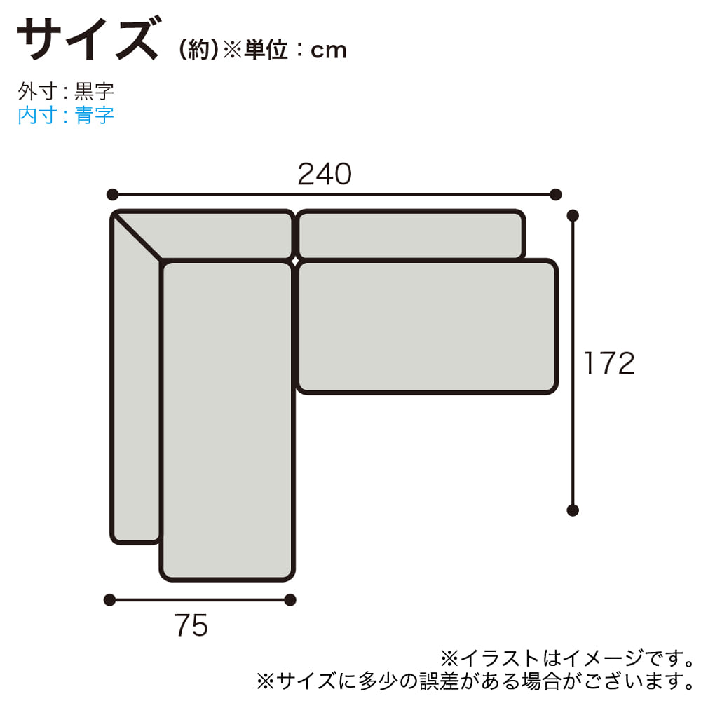 | サイズ: | 幅240cm ×奥行172cm ×高さ82cm ×座面高46cm |